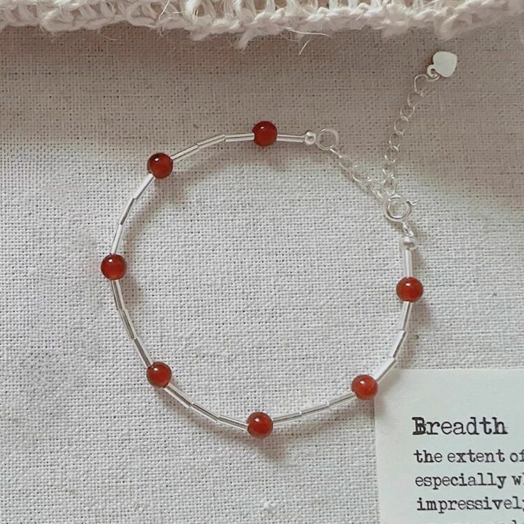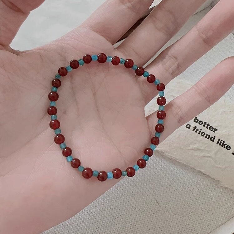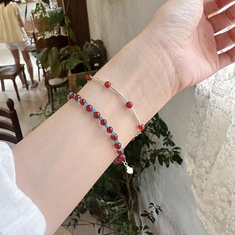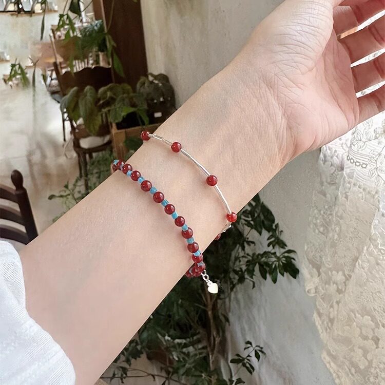 📚 Margot手作复古风红玛瑙串珠磷灰石串珠手链女撞色弹力绳叠带手饰