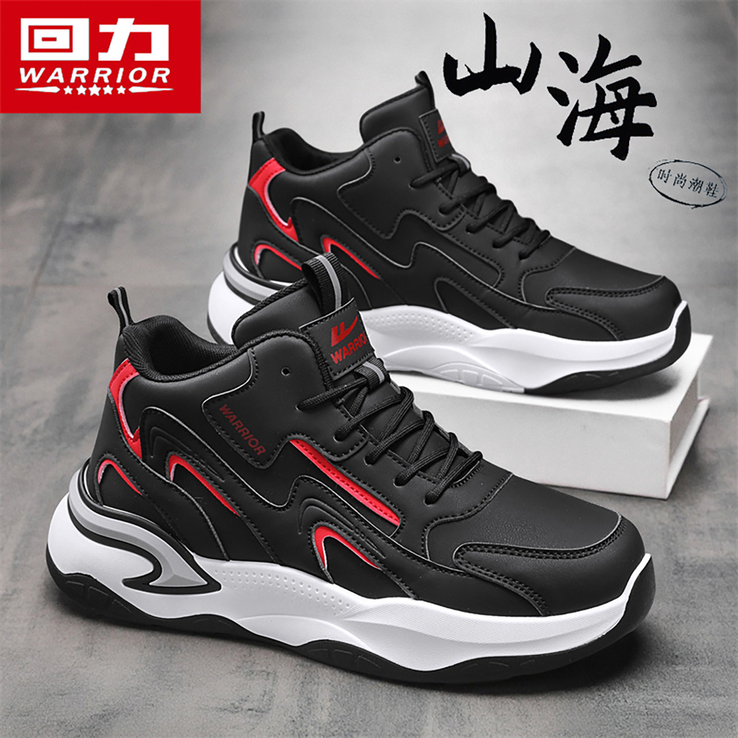 📚 回力篮球鞋男款2026冬季新款男士高帮厚底皮面防水超轻耐磨运动鞋