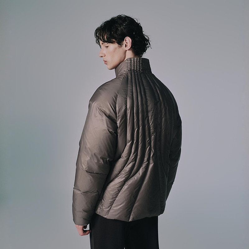 📚 MODE COMMUTER | MC透视防泼水格纹弧度绗缝立领短款羽绒服