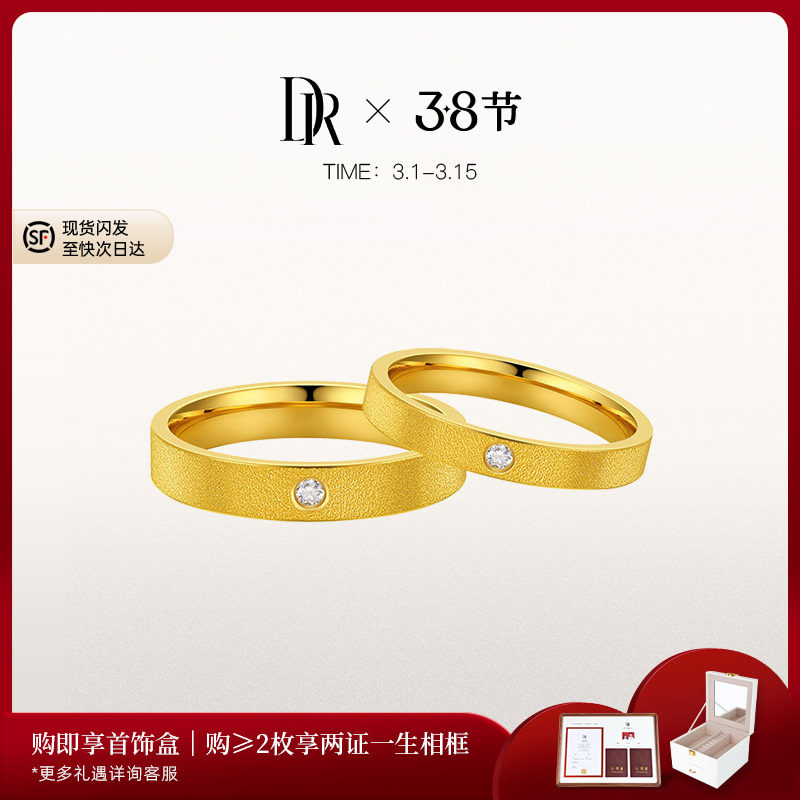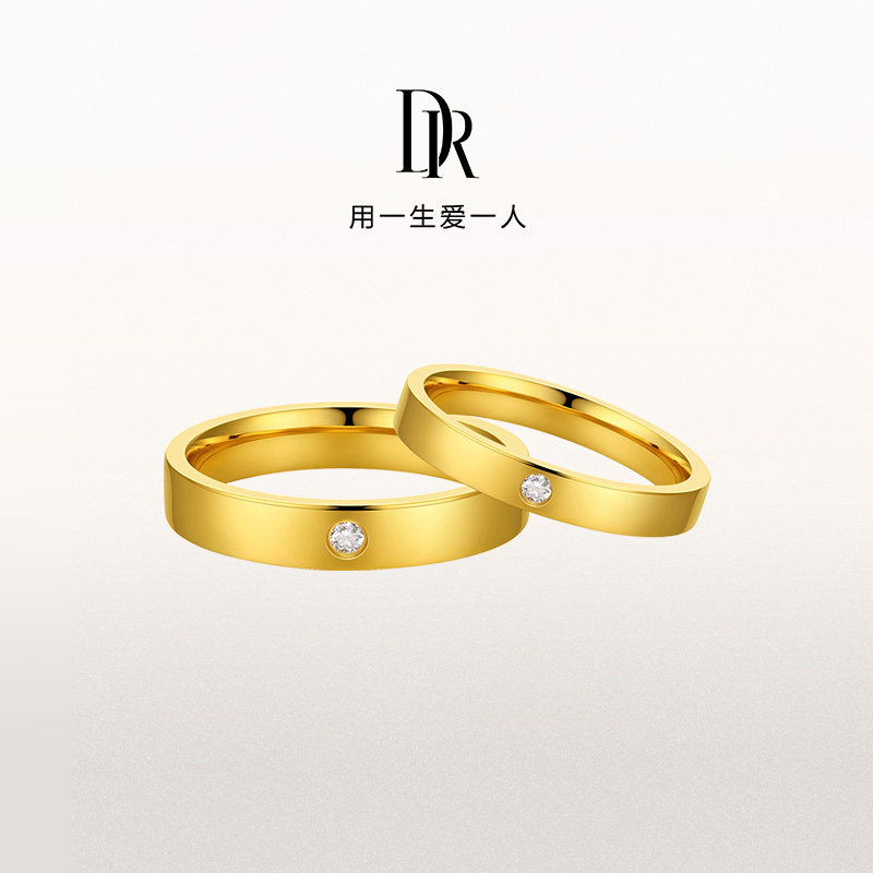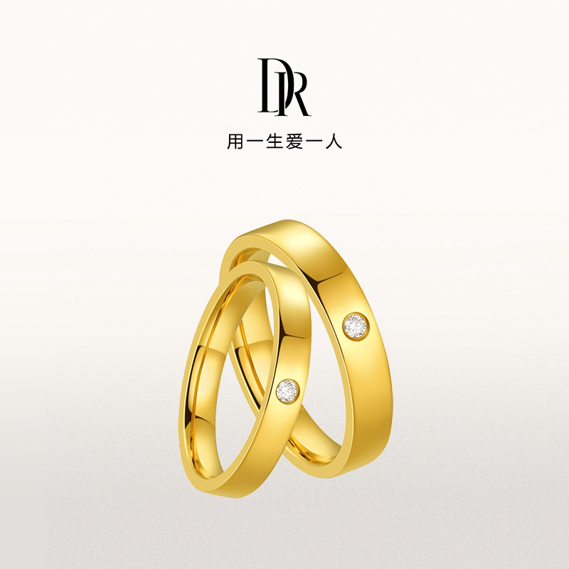 📚 DR一生一世唯一结婚对戒黄金天鹅绒直臂简约质感黄金对戒