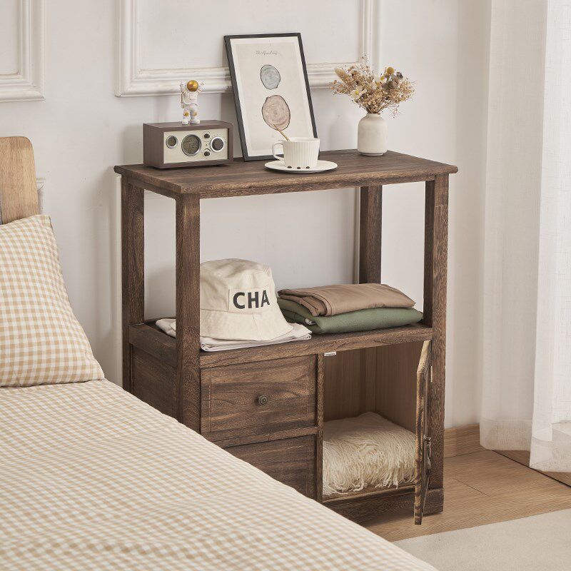 📚 复古床头柜北欧实木十斗t柜民宿现代轻奢边柜整装美式八斗柜客厅