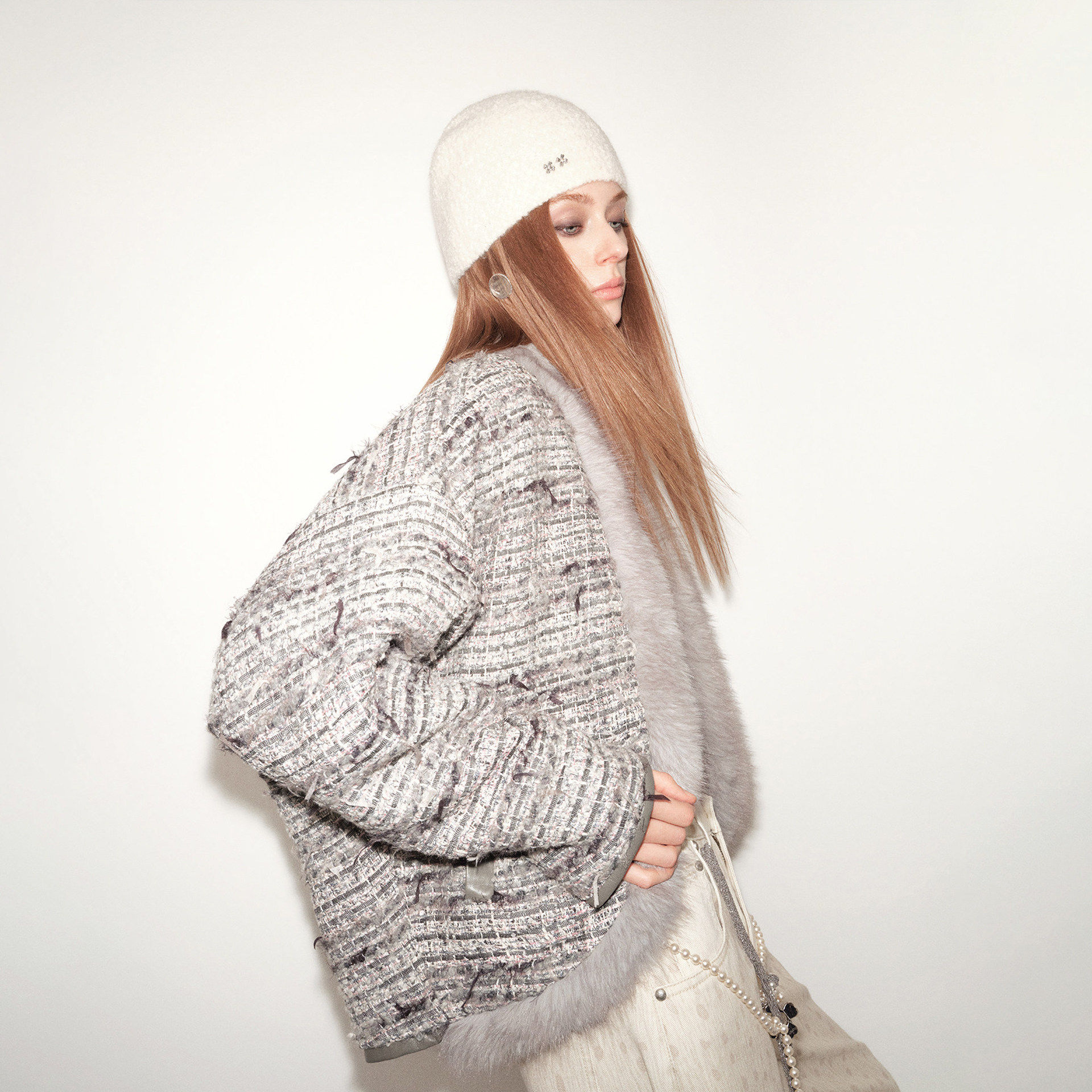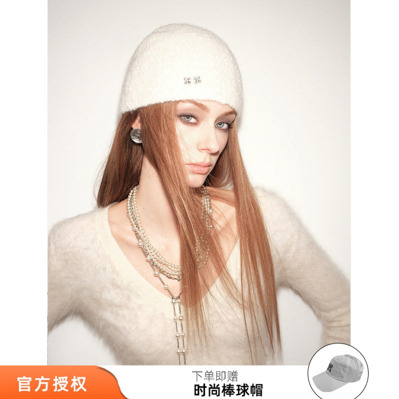 📚 tokokkino 26春夏新款拉长冷调米白色长毛冷帽保暖百搭帽子女