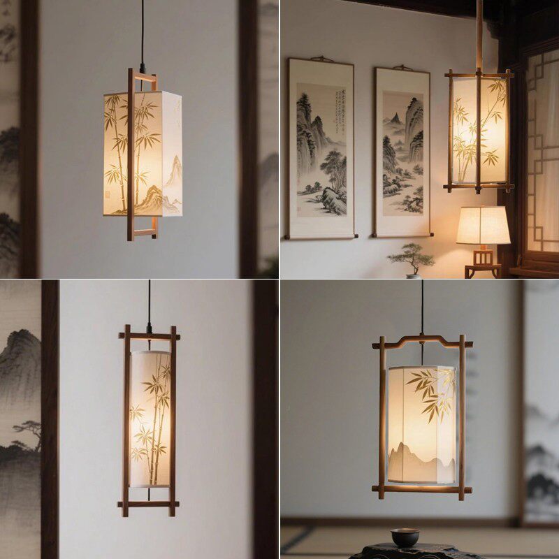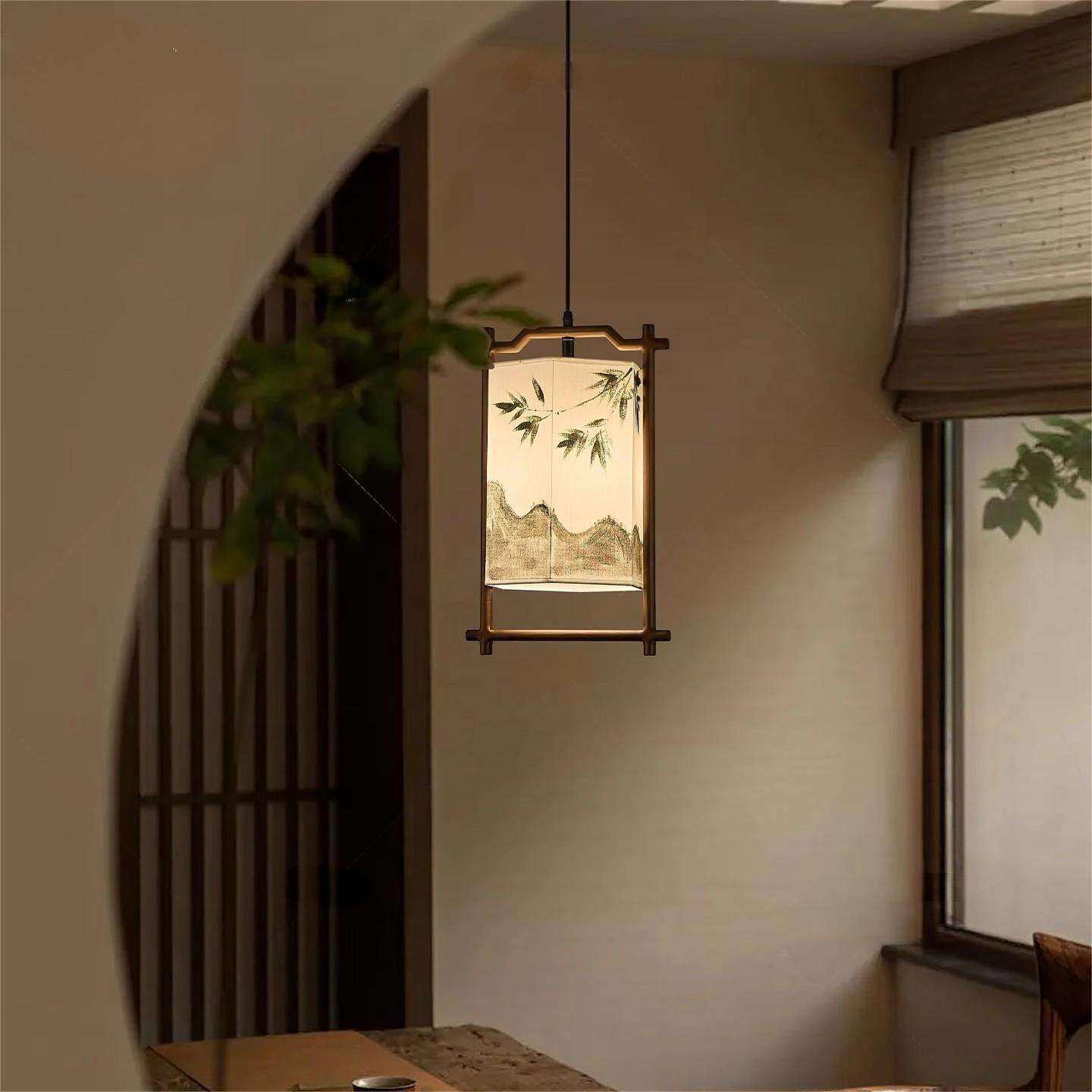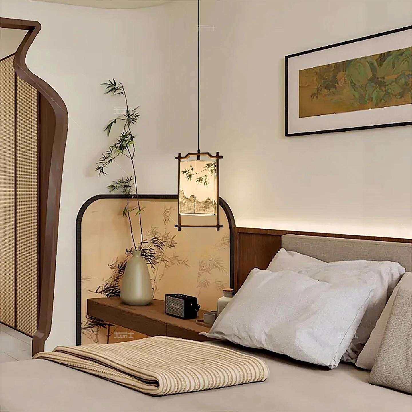 📚 宋氏美学极简吧台吊灯茶室卧室民宿玄关过道手绘中式装饰布艺灯具