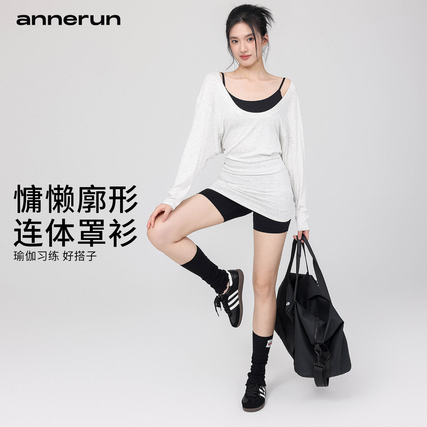 📚 annerun大U领运动罩衫女慵懒宽松休闲普拉提蝙蝠袖长袖瑜伽服上衣
