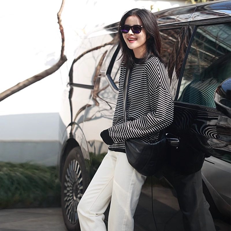 📚 COLIN WANG-法式后花园|德国扬子超细羊毛条纹海魂衫针织衫张若愚