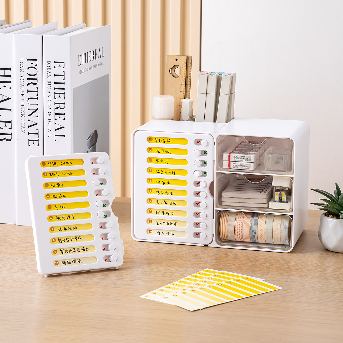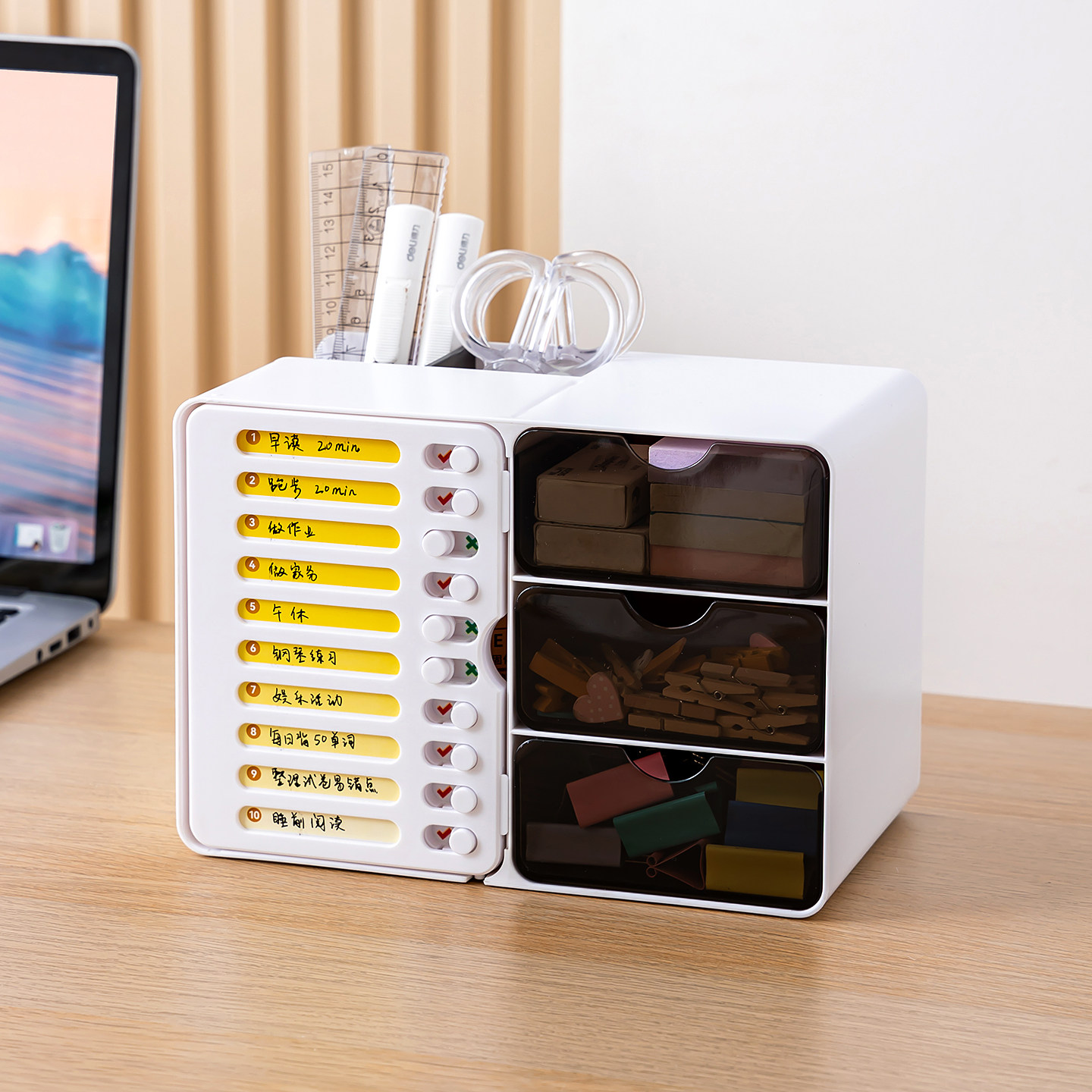 🎁特别值得一提的是,这款打卡器还有一个贴心的小提示牌设计,每次看到它,孩子们都会觉得很有成就感。不得不说,这款文具真的是让孩子们的学习生活更加有序、高效。