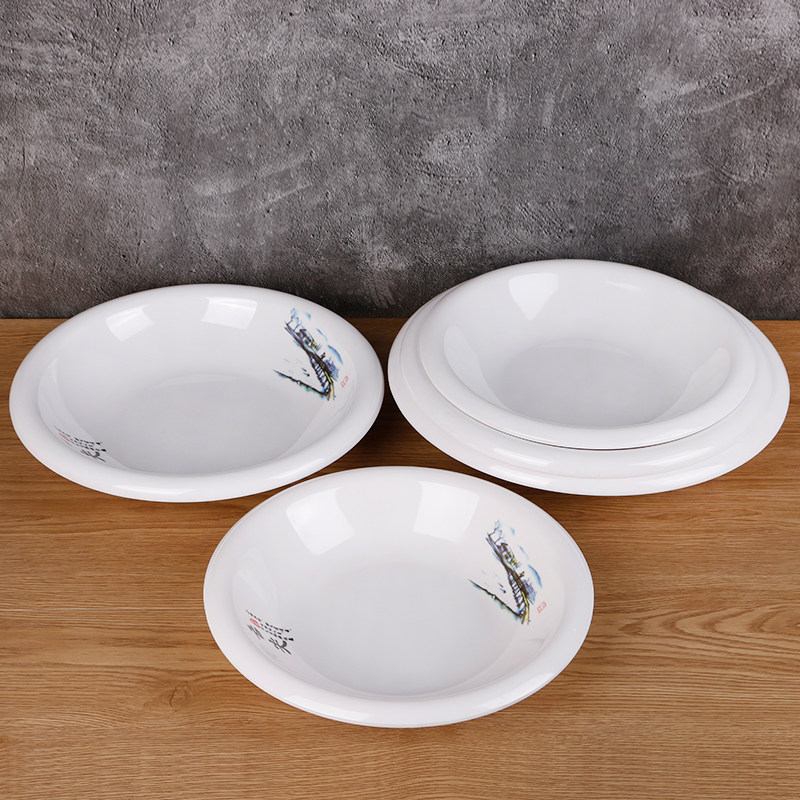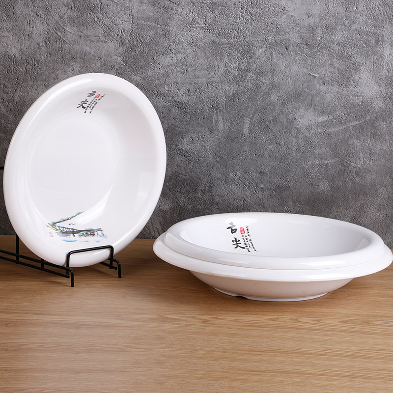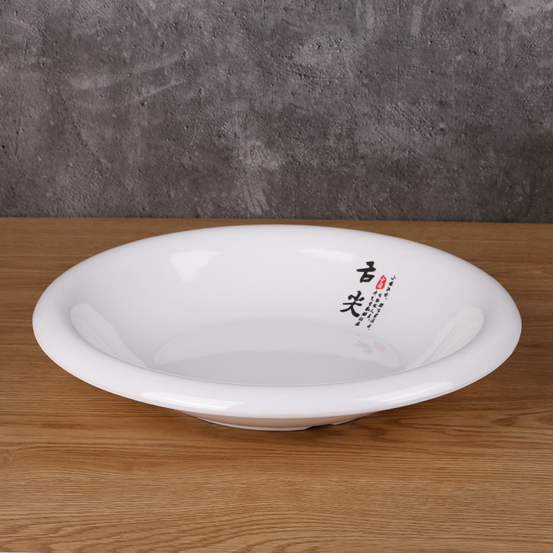 📚 密胺反边深盘子圆形仿瓷塑料汤盆酒店饭店加厚菜汤盘子商用A5餐具