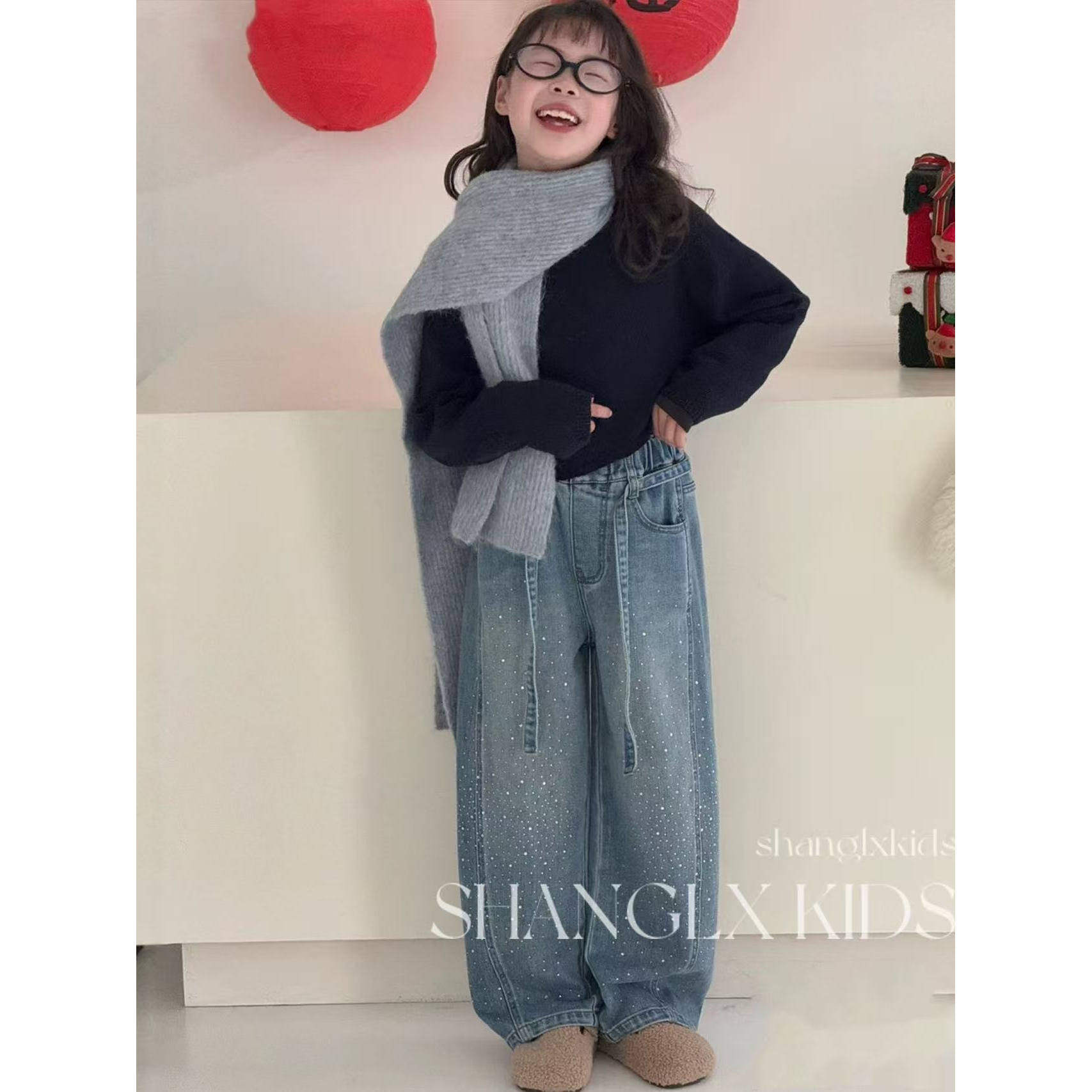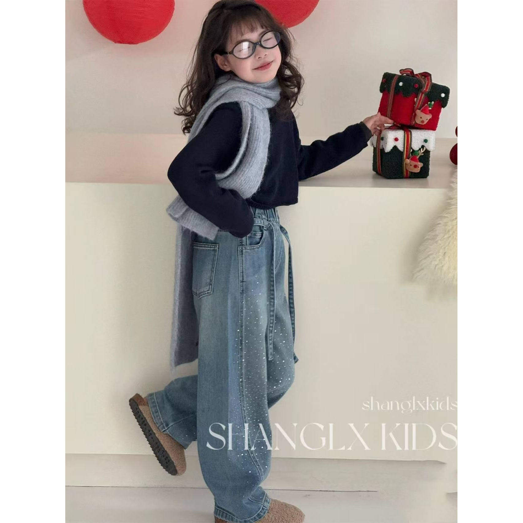 📚 女童独特满天星裤子加绒牛仔阔腿裤2026秋款冬季儿童女孩冬裤加厚