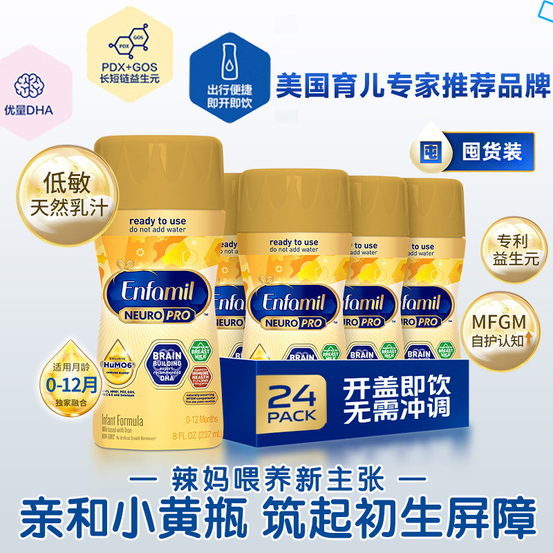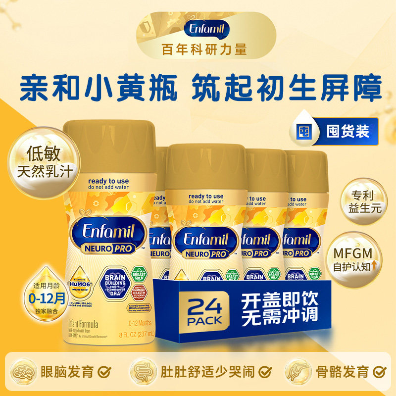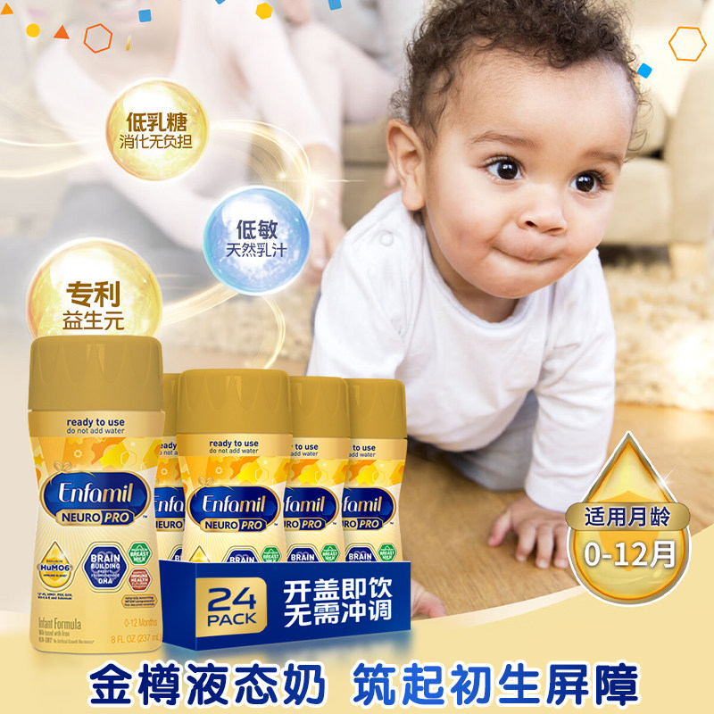 📚 美国版进口美赞臣Enfamil1段婴幼儿液体奶水奶一段237ml*24瓶临期
