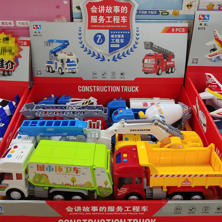 📚 林达惯性警车皮卡救援车客机复兴号火车灯光音乐压路机工程车男孩