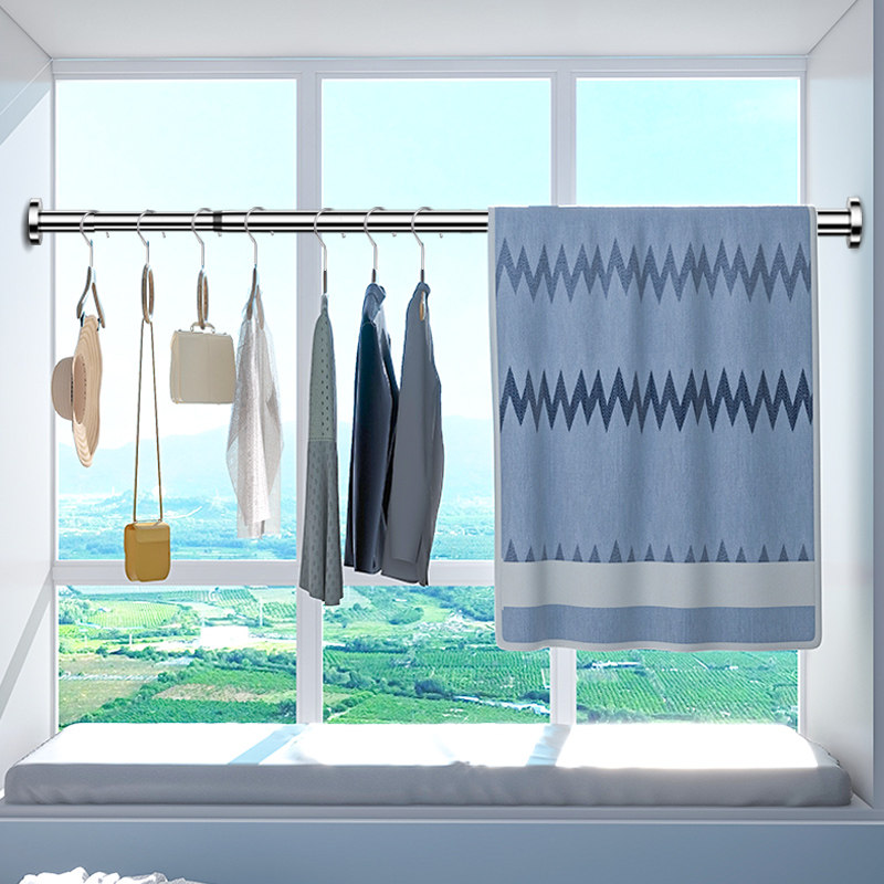 📚 304不锈钢打孔伸缩晾衣杆阳台固定式晾衣架衣柜浴室撑杆一根挂杆
