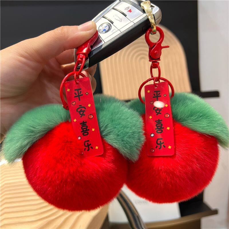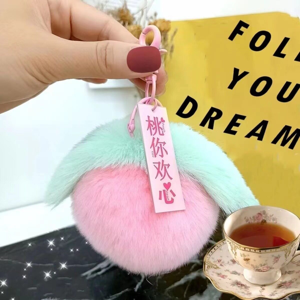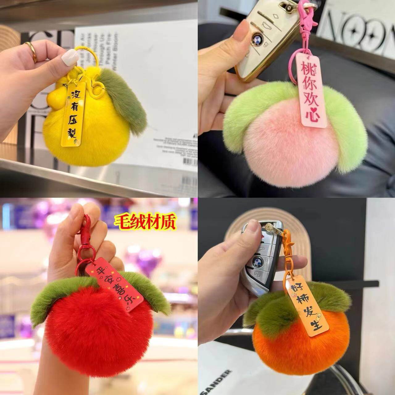 📚 新款桃你欢心毛绒挂件好柿发生创意钥匙扣可水果包包挂饰没有压梨