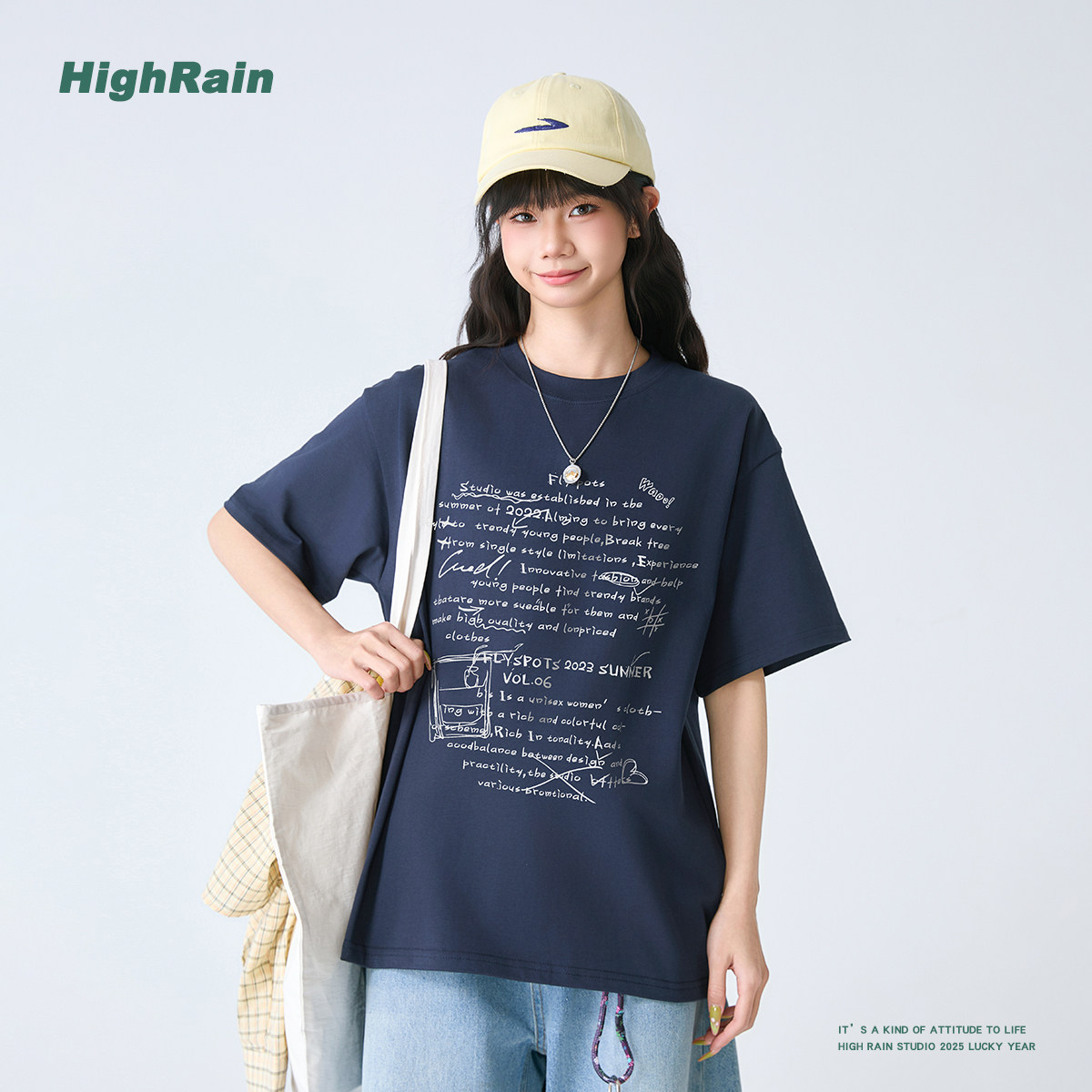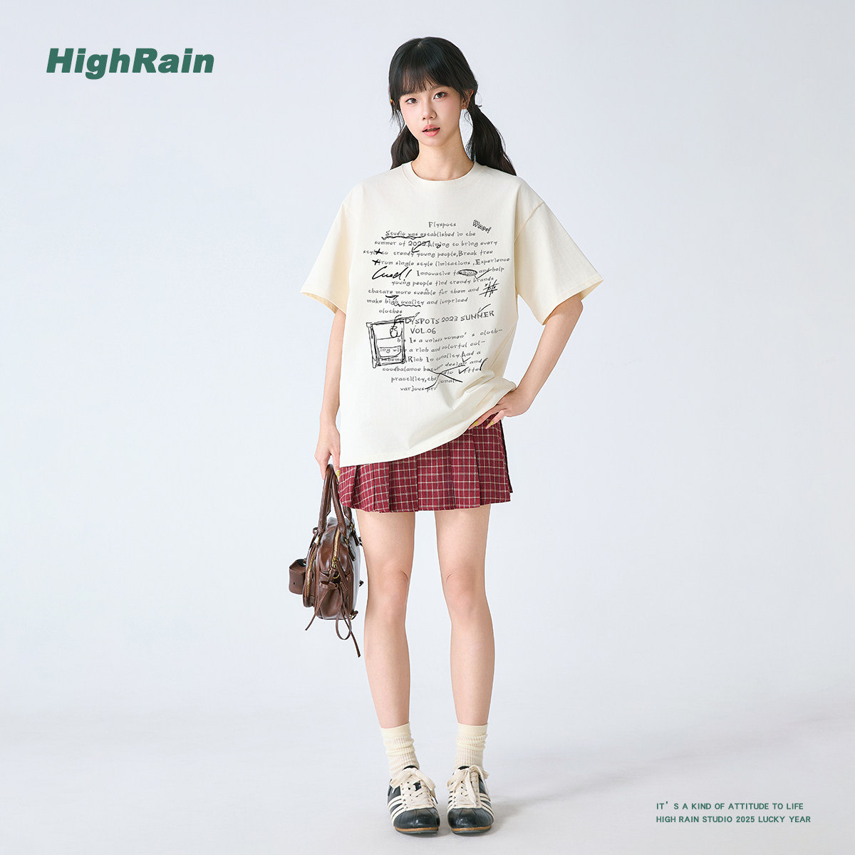 📚 美式慵懒风字母奶杏色短袖T恤女夏日纯棉宽松显瘦半袖情侣上衣男