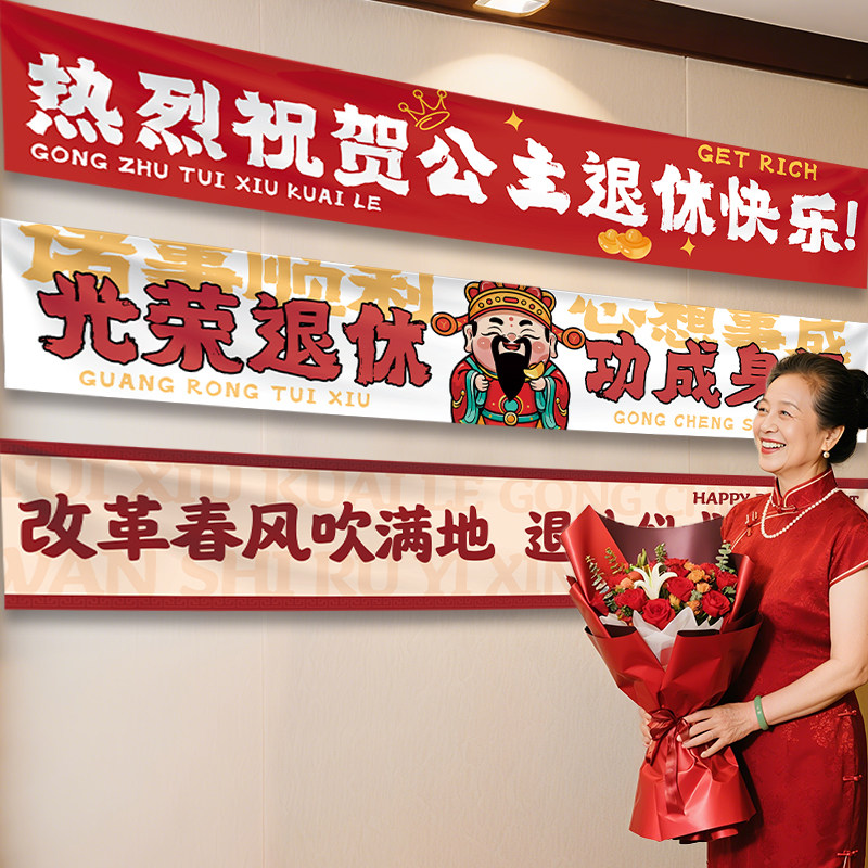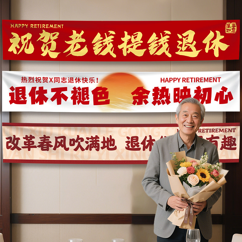 📚 光荣退休横幅挂布定制教师领导欢送会布置离职仪式感荣休场景条幅