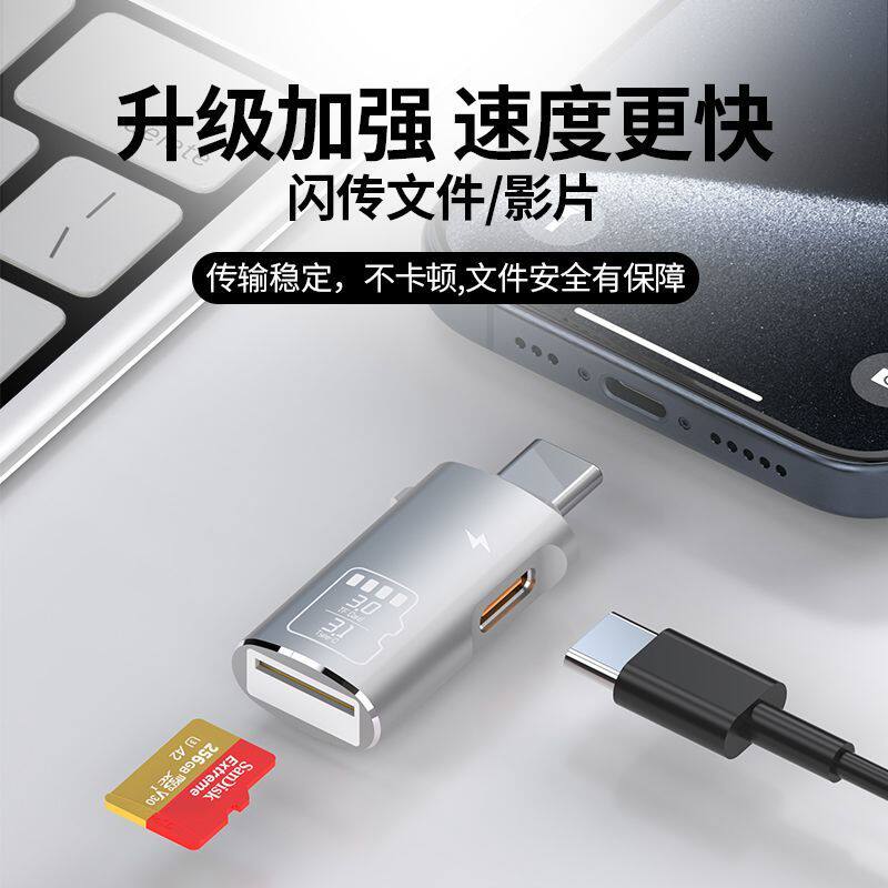 📚 连意手机读卡器二合一typec3.1适用苹果15/16华为1TB电脑外接tf/SD内存储存卡高速读写车载转换充电迷你otg