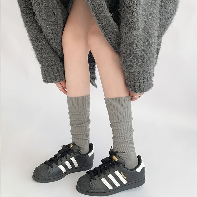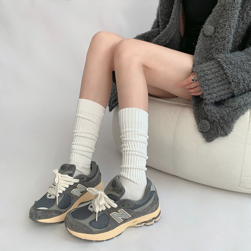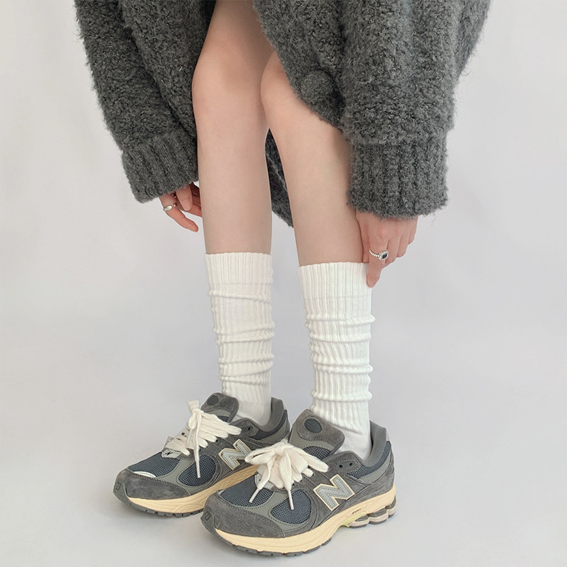 📚 夜间教习室长筒堆堆袜女秋针织中筒袜白色jk袜子灰色小腿袜女春秋