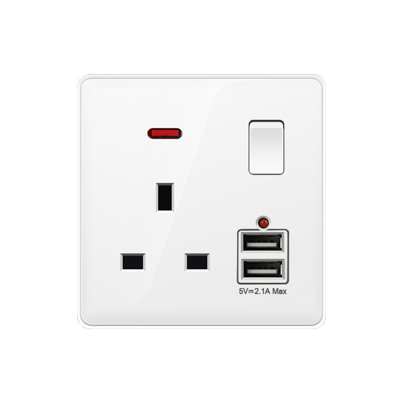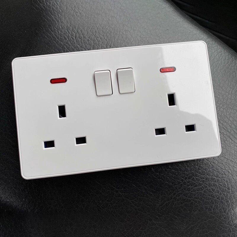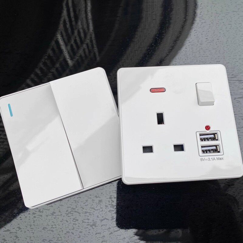 📚 香港英标双联13A英式开关插座带USB充电英规方脚电灯制多孔白面板