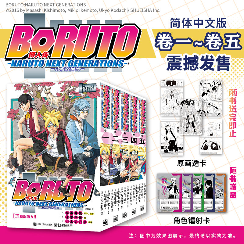 📚 【赠原画透卡+角色镭射卡】博人传漫画火影次世代卷1-卷5 简中版 岸本齐史 池本干雄著 火影忍者漫画重制版中忍篇6册+波之国篇4册