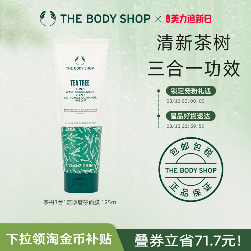 📚 【官方正品】TheBodyShop美体小铺茶树净肌3合1磨砂面膜125ml清洁