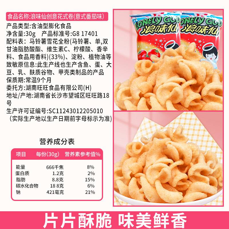 📚 旺旺浪味仙30包薯片薯卷整箱零食大礼包番茄味零食小吃休闲食品