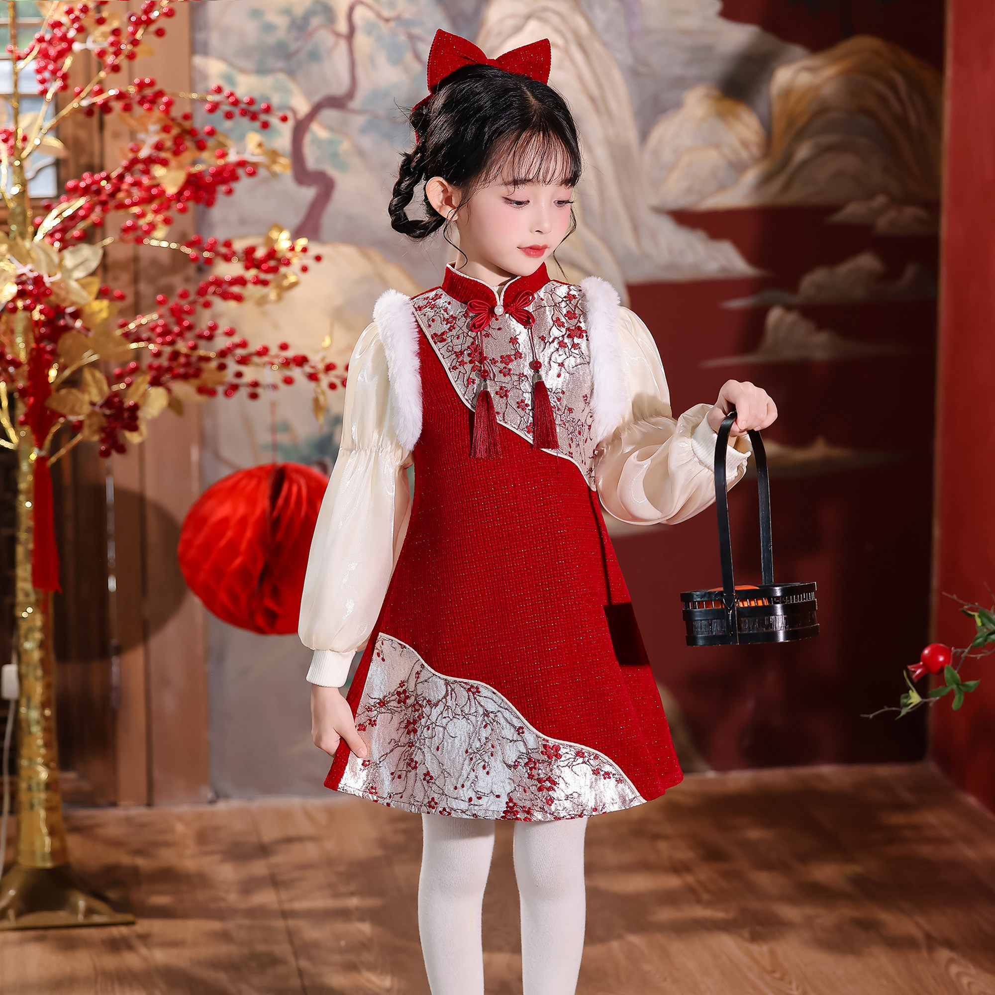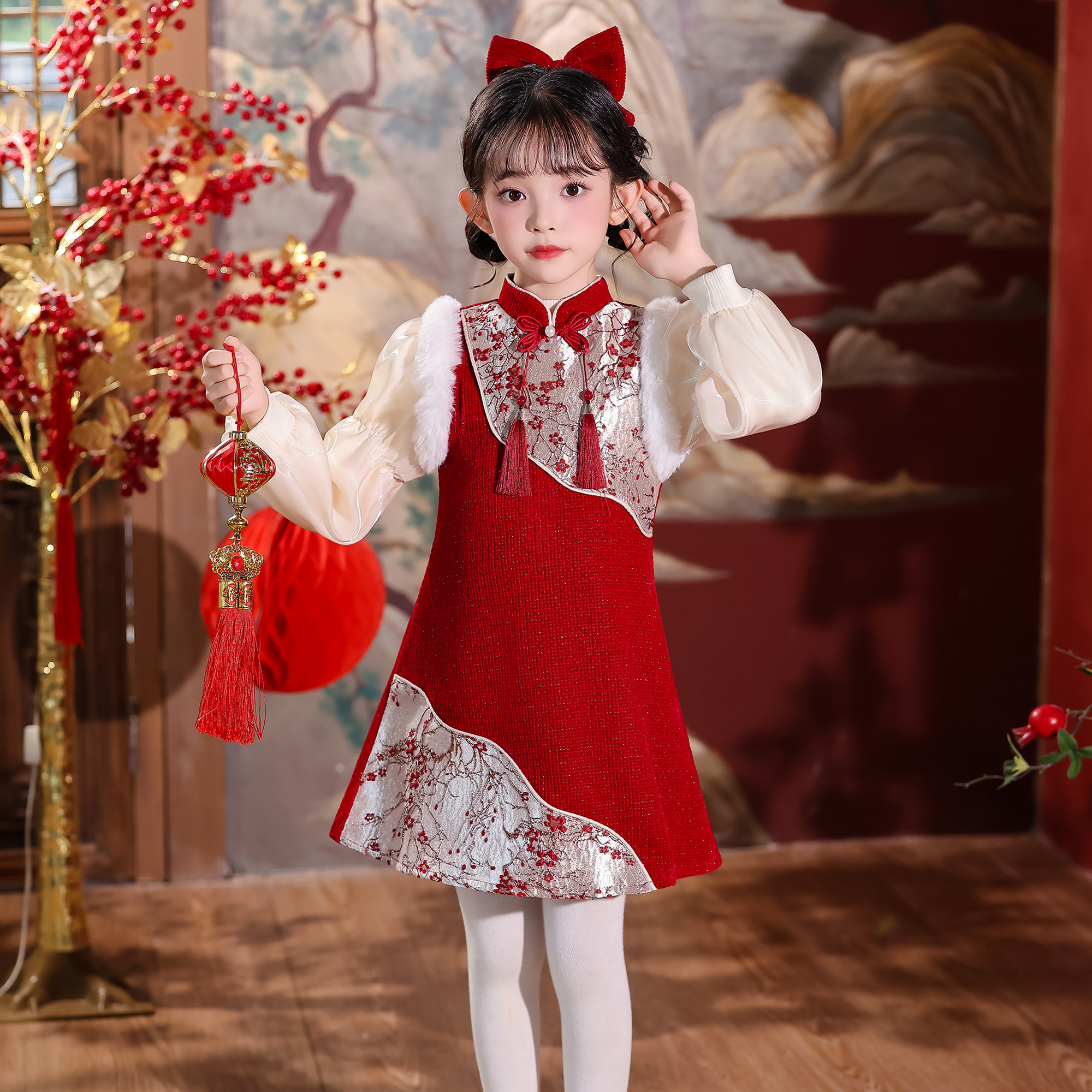 秋冬款冬装女童国风连衣裙