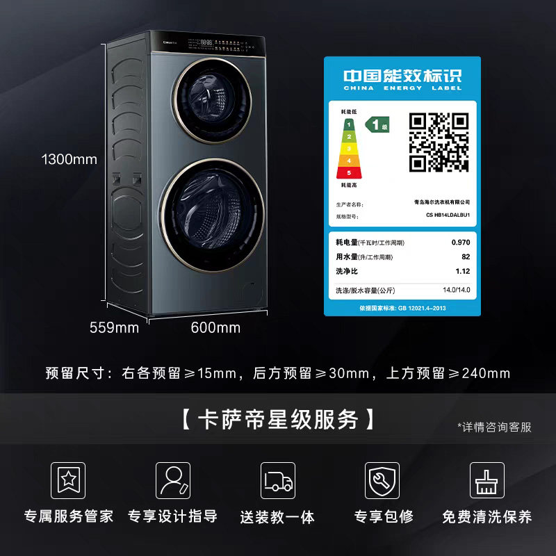 📚 换新补贴【卡萨帝揽光】14kg双子母滚筒分区洗烘一体懒人洗衣机LB