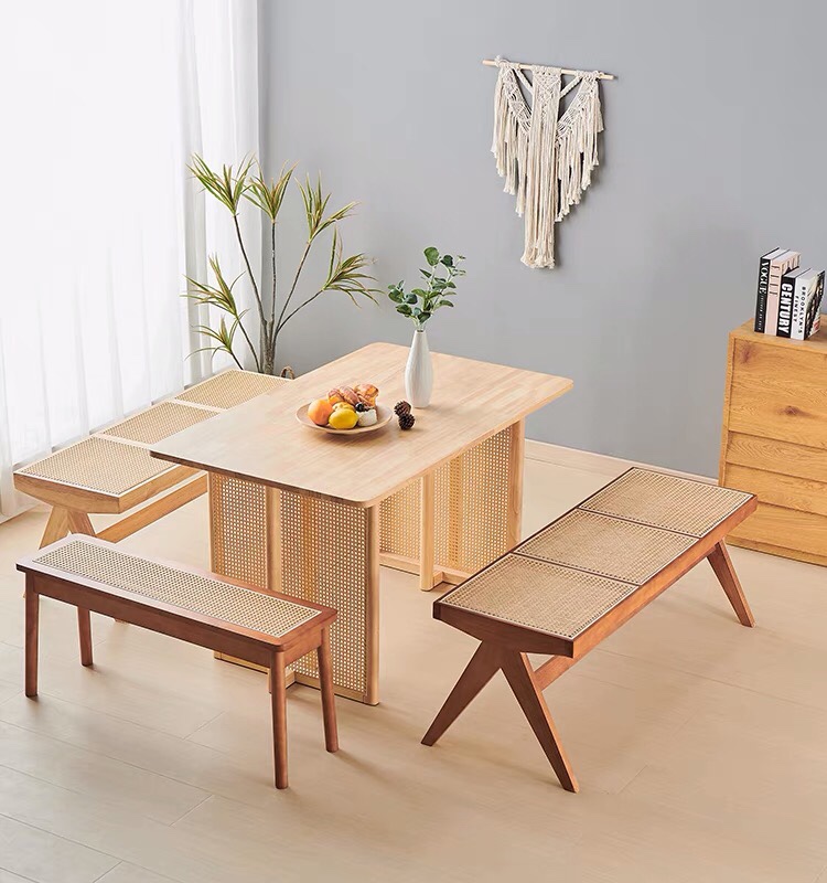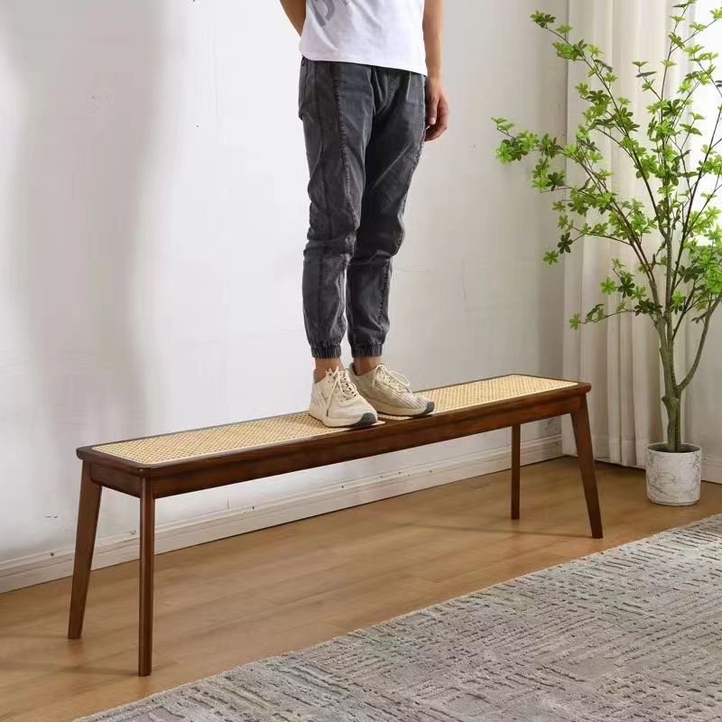 📚 昌迪加尔椅子藤编长条凳家用实木餐椅日式原木长板凳床尾凳换鞋凳