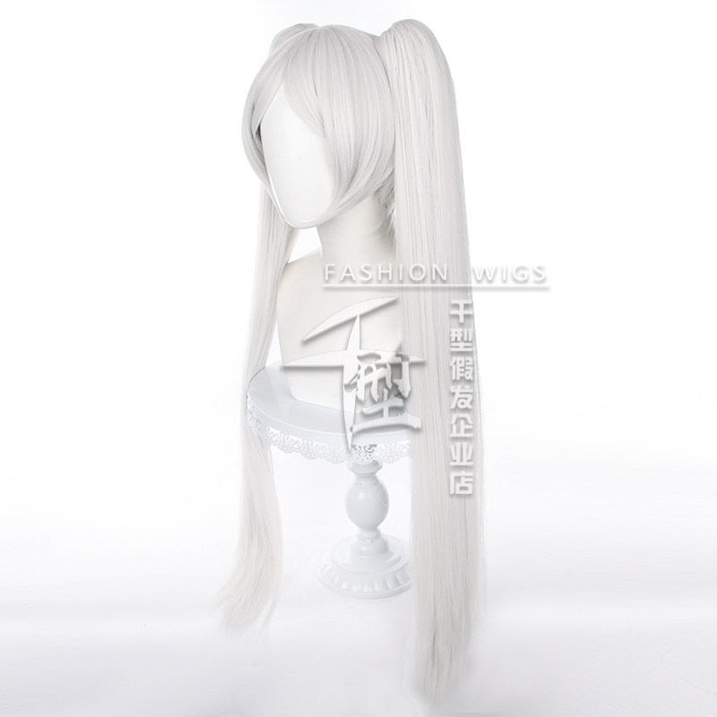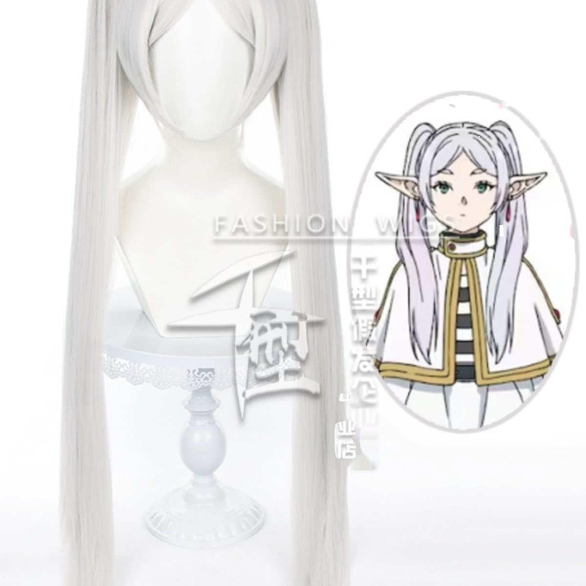 📚 【千型】葬送的芙莉莲Frieren银灰白虎口夹双马尾cosplay假发