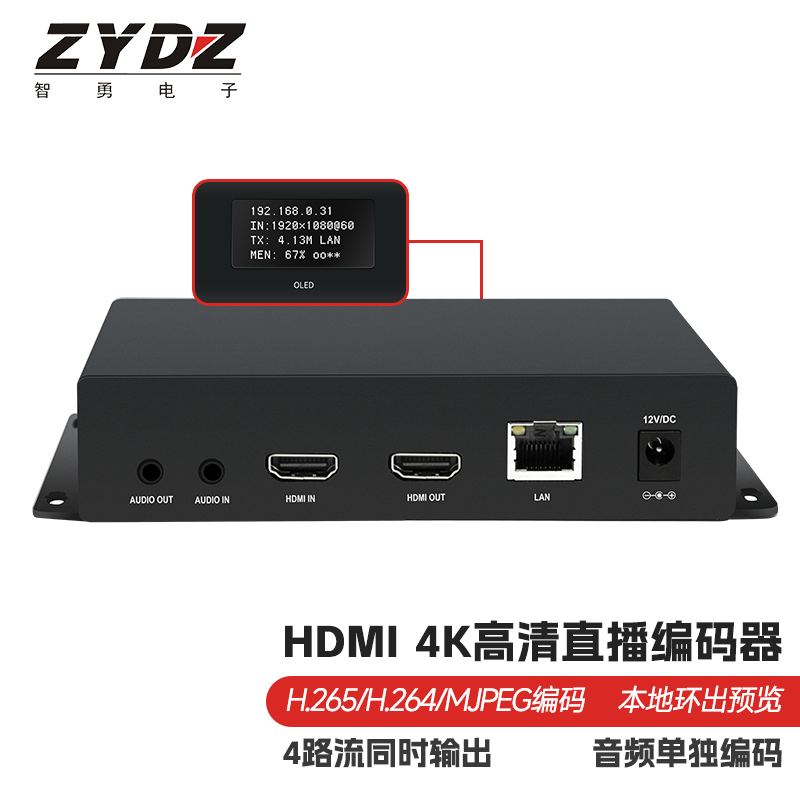 📚 智勇 4K直播HDMI推流编码器 带环出带显示屏 涉密录像监控回放
