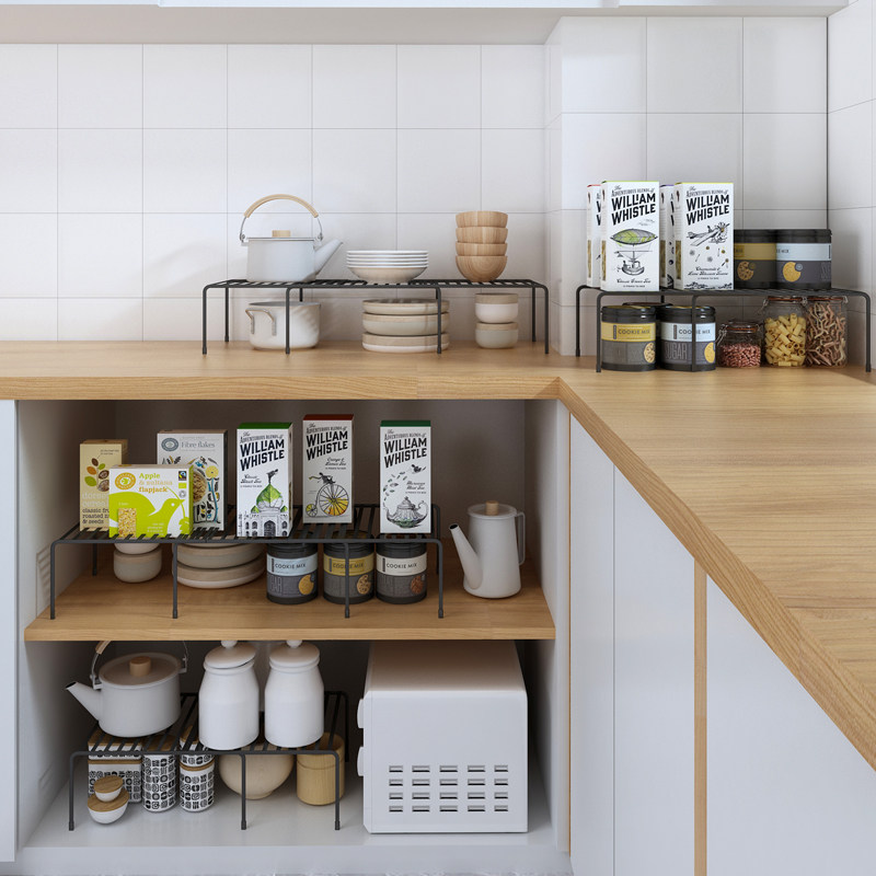 📚 储物柜子收纳分层架加宽厨房橱柜内碗碟架桌面水槽下置物架放锅架