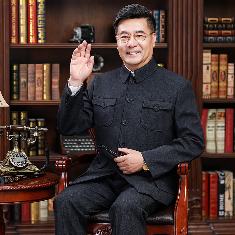 📚 秋冬装中老年中山装男中山服老人爷爷装老年人加绒加厚款外套上衣