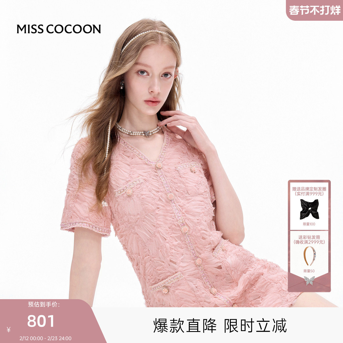 📚 MISSCOCOON可可尼小香风连衣裙女2025新款秋冬高级感法式粉色裙子