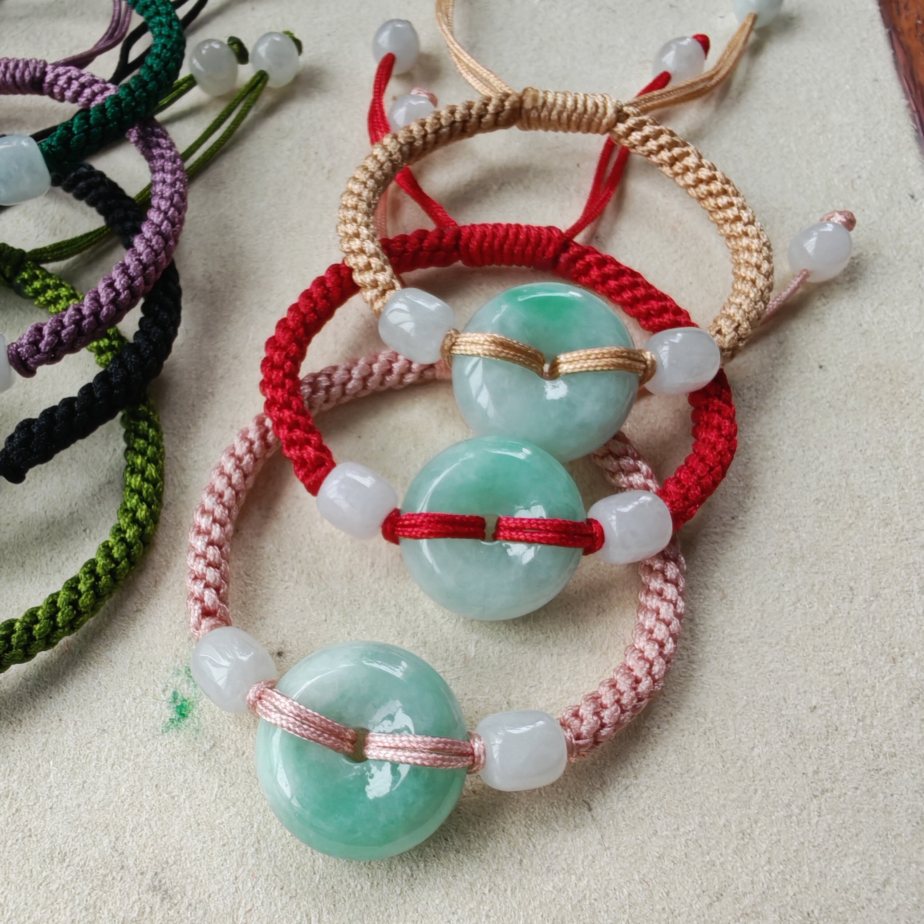 📚 翡翠A货2026马年平安扣亲子本命年红手绳男女生小孩手工编织手链