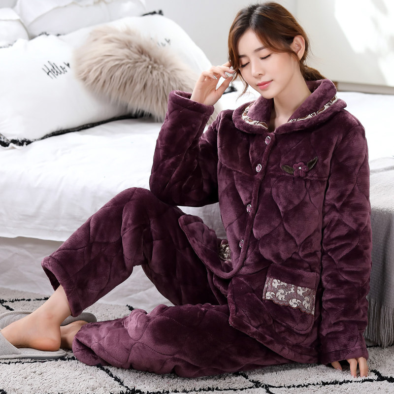 📚 秋冬季中年人睡衣女士长袖夹棉S小码30-40-50-60岁加绒加厚家居服