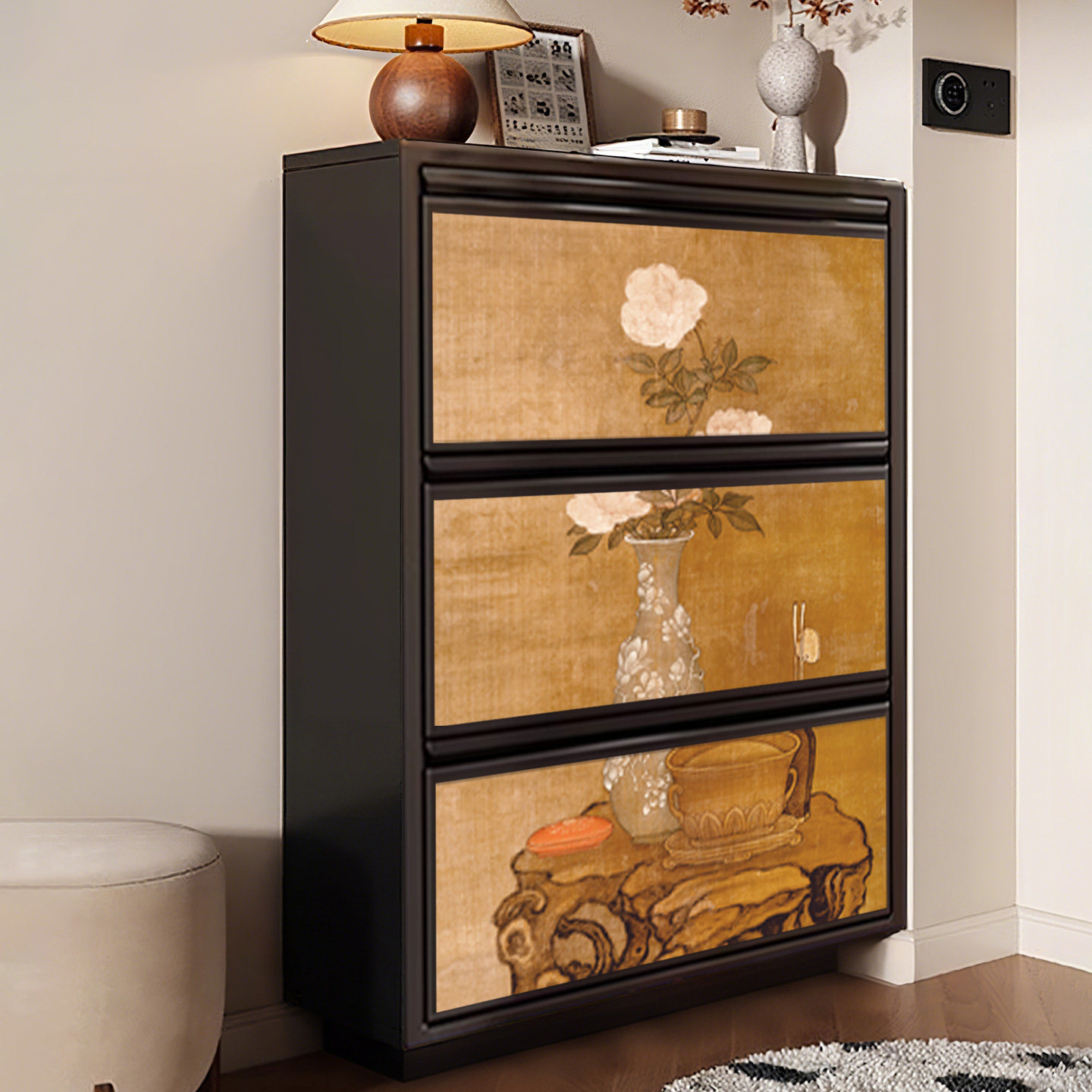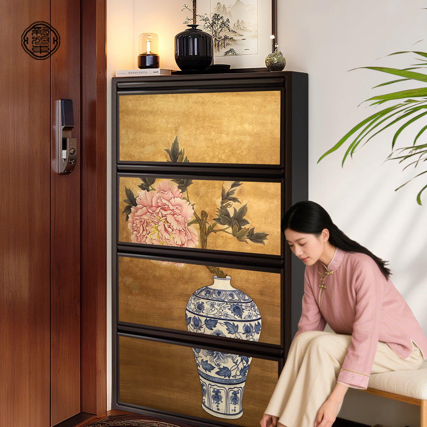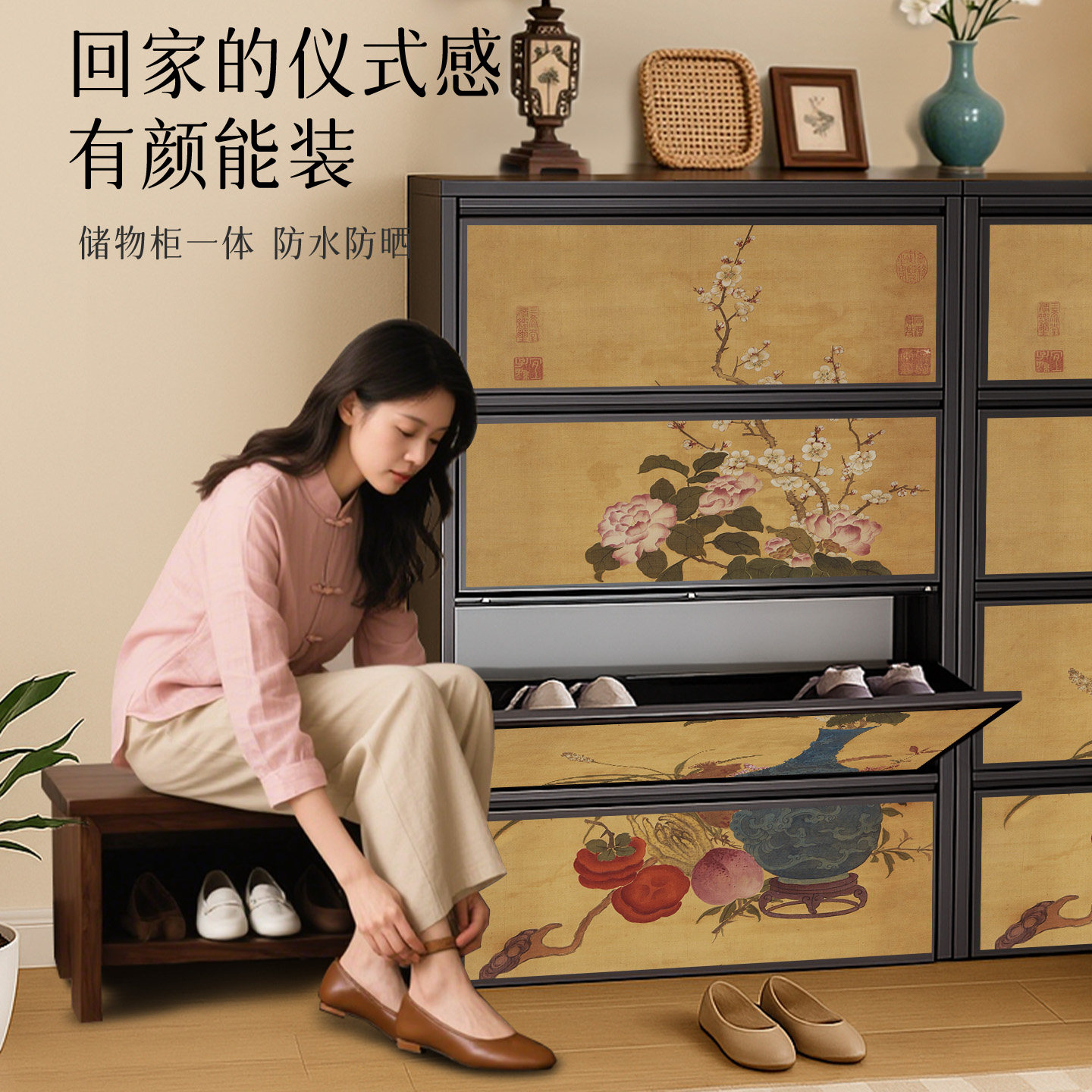 📚 宋式美学鞋柜家用门口超薄极窄收纳柜一体靠墙入户门外走廊翻斗柜