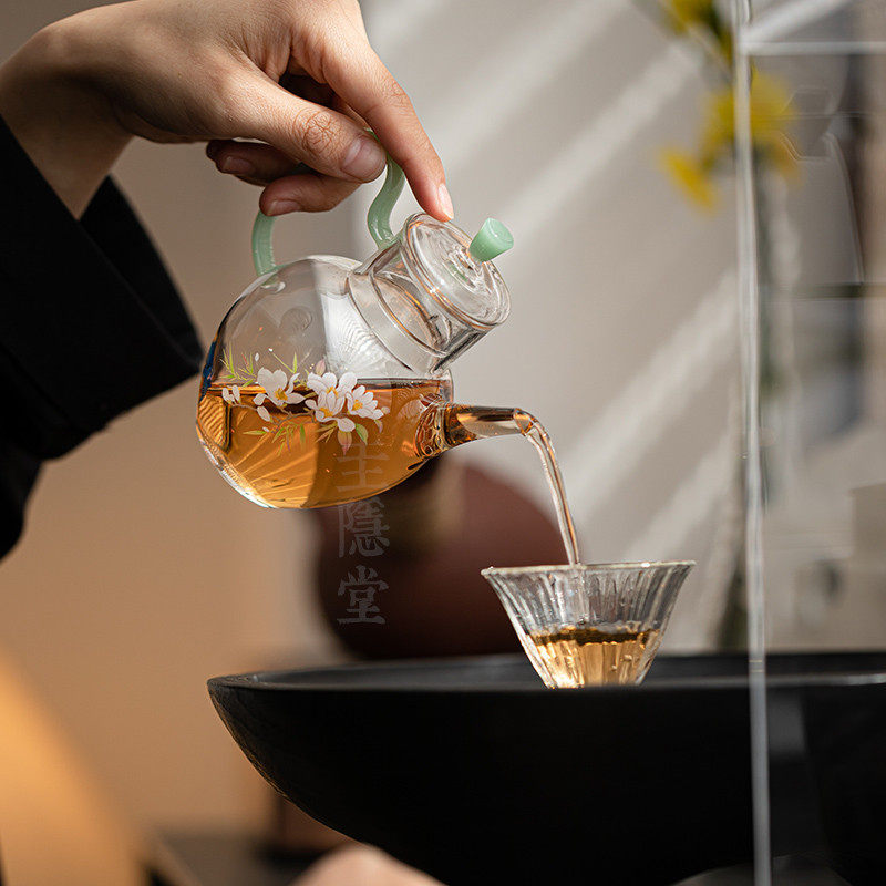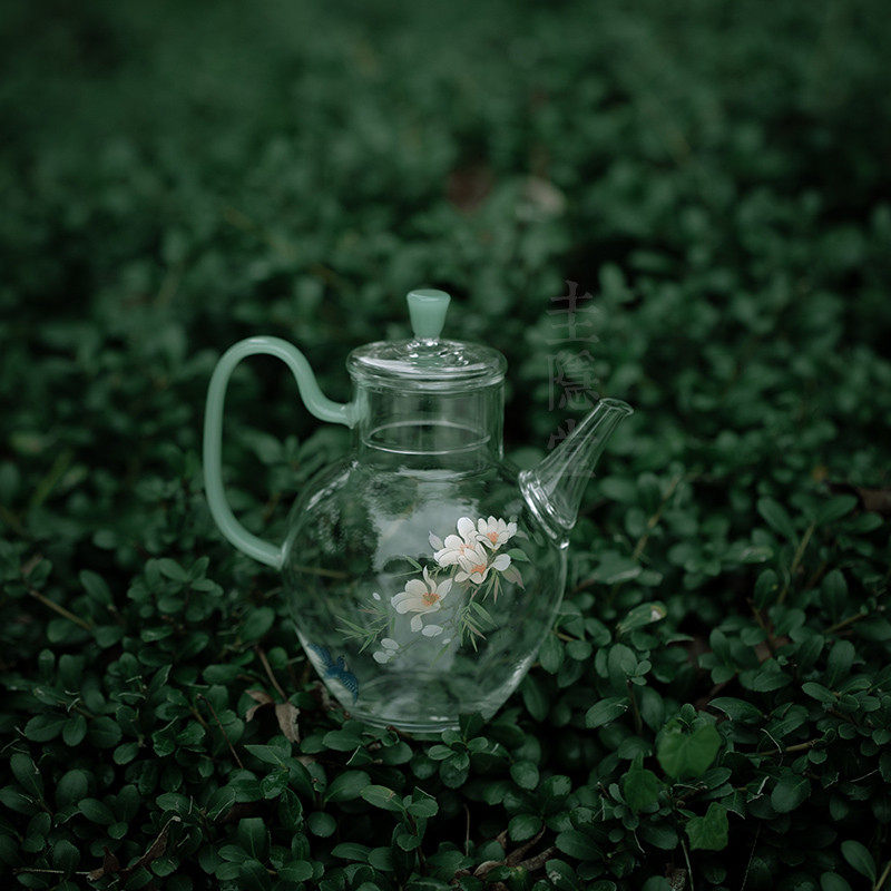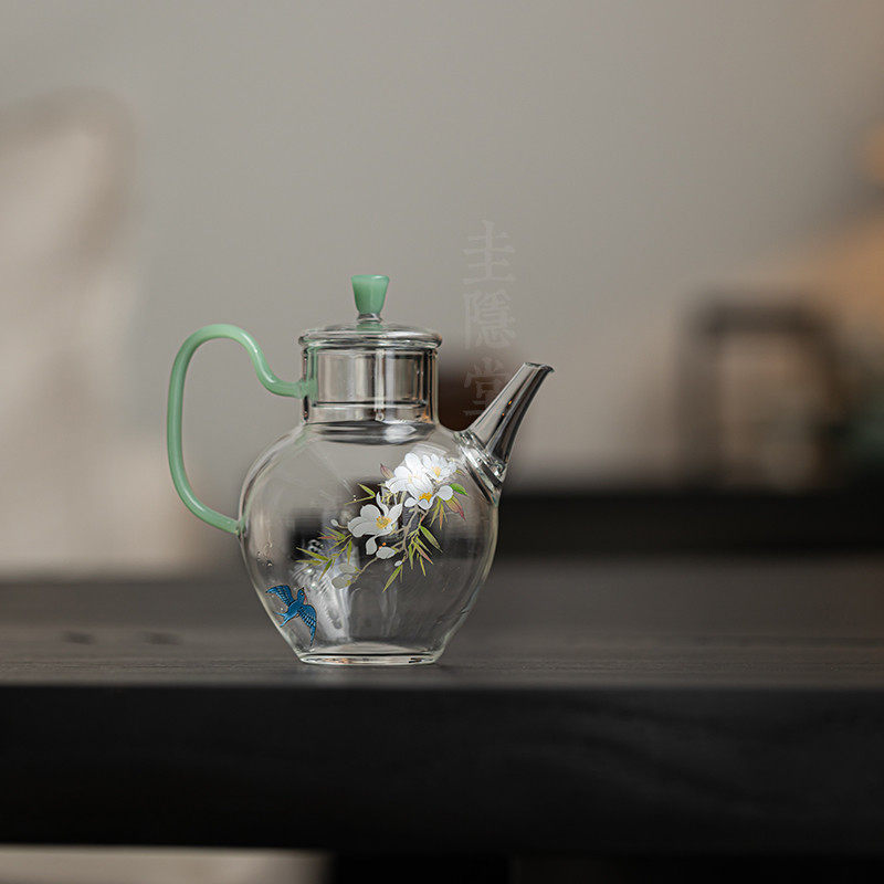 📚 圭隐堂手工高透耐热玻璃茶壶家用绿茶泡茶壶仿宋手执壶小号单壶
