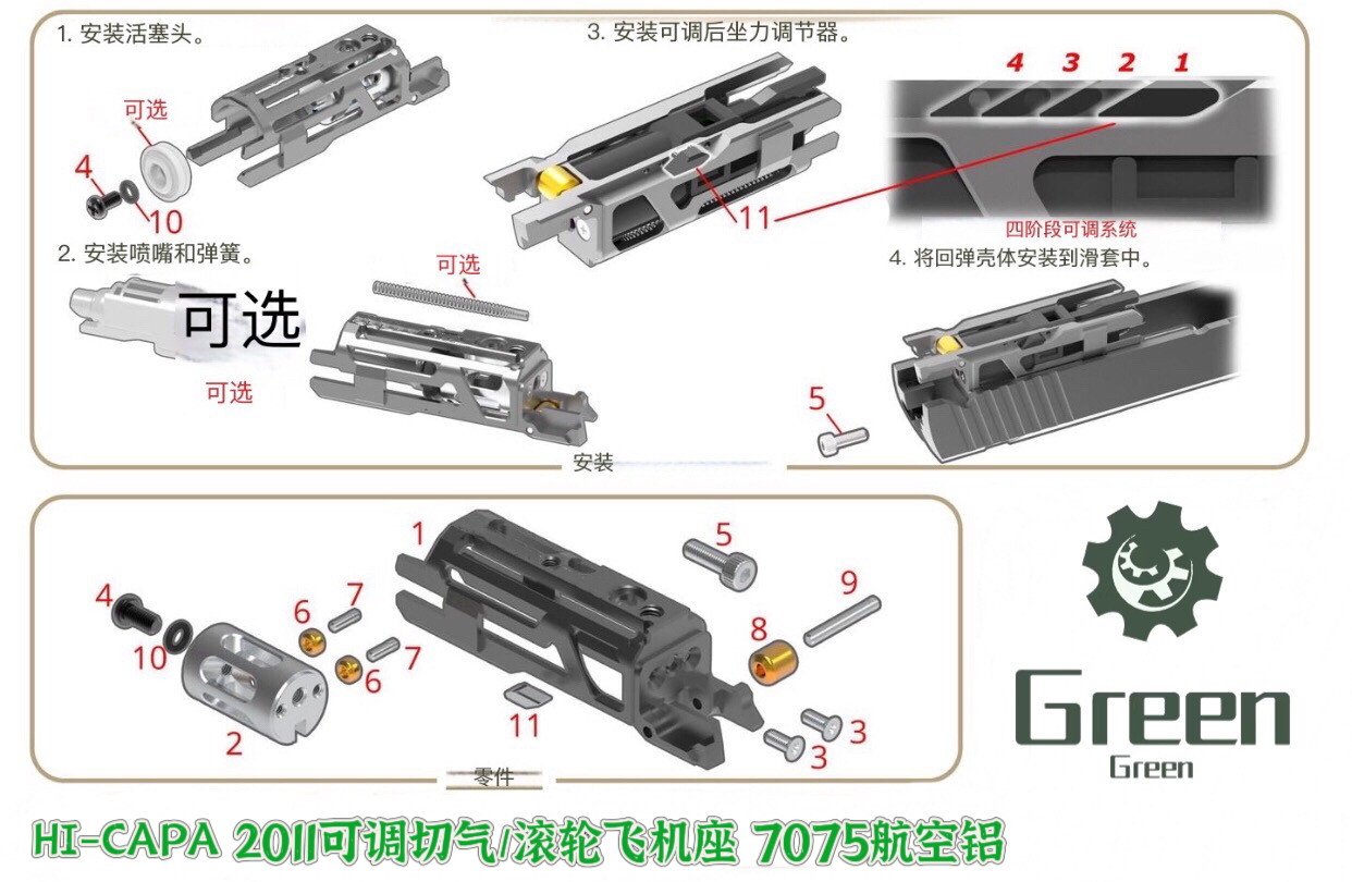 📚 Green TM/HIcapa 7075铝双o圈拍头早截气系统轻量化1911/2011通用
