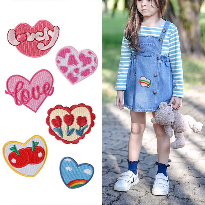 📚 新款自粘爱心布贴羽绒服装饰补丁贴修补小洞牛仔裤装饰免缝刺绣贴