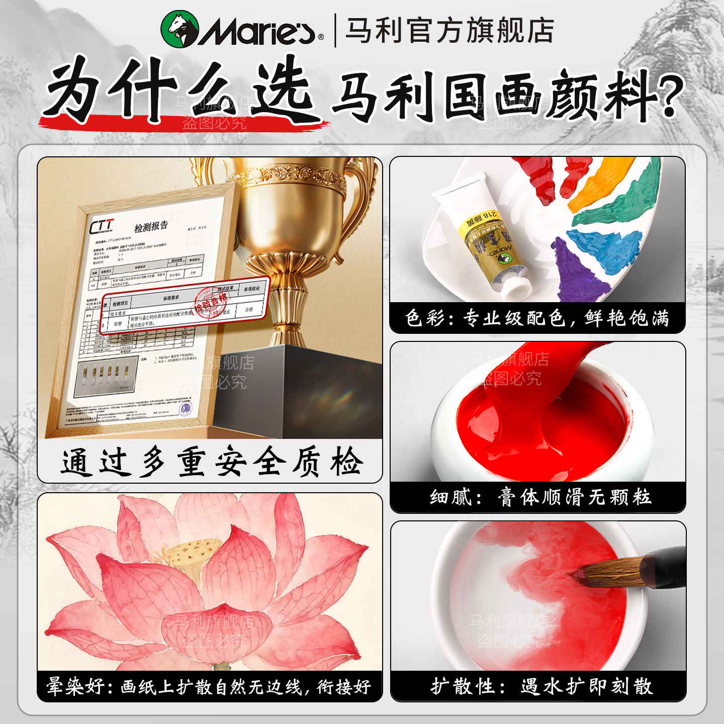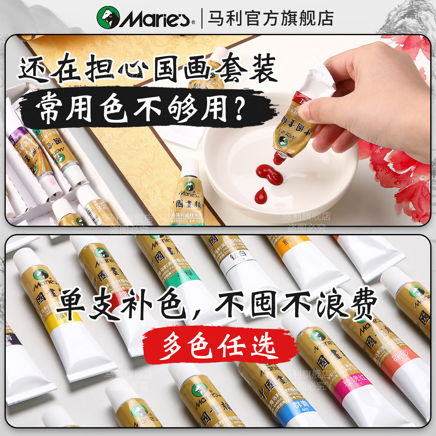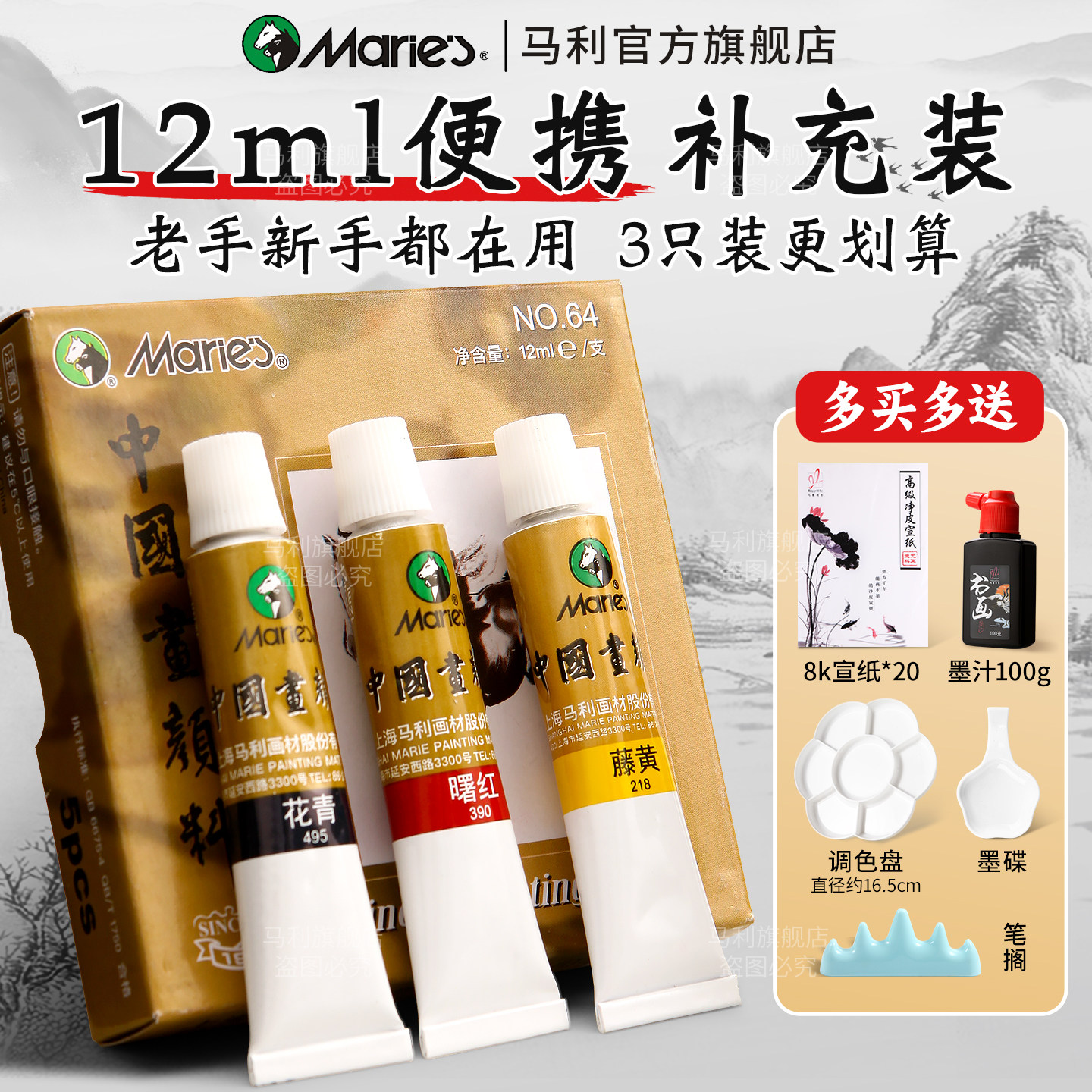 📚 马利牌国画颜料官方旗舰店单支12ml中国画颜料单色藤黄钛白赭石群青花青水墨画山水工笔画初学者入门专业颜料