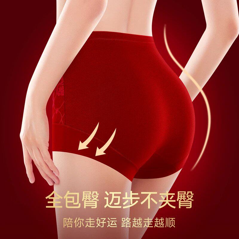 📚 美雅挺2026新款女士高腰收腹三角内裤女棉抑菌属马本命年红色无痕
