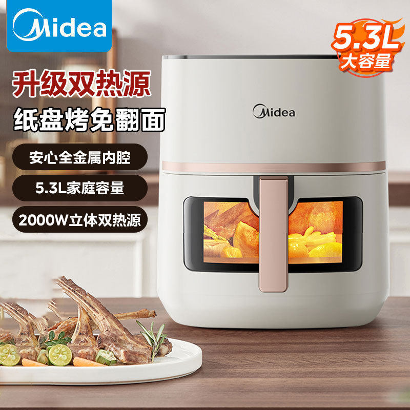 📚 美的MF-KZC5394炎烤空气炸锅不用翻面双热源可视家用实用大容量