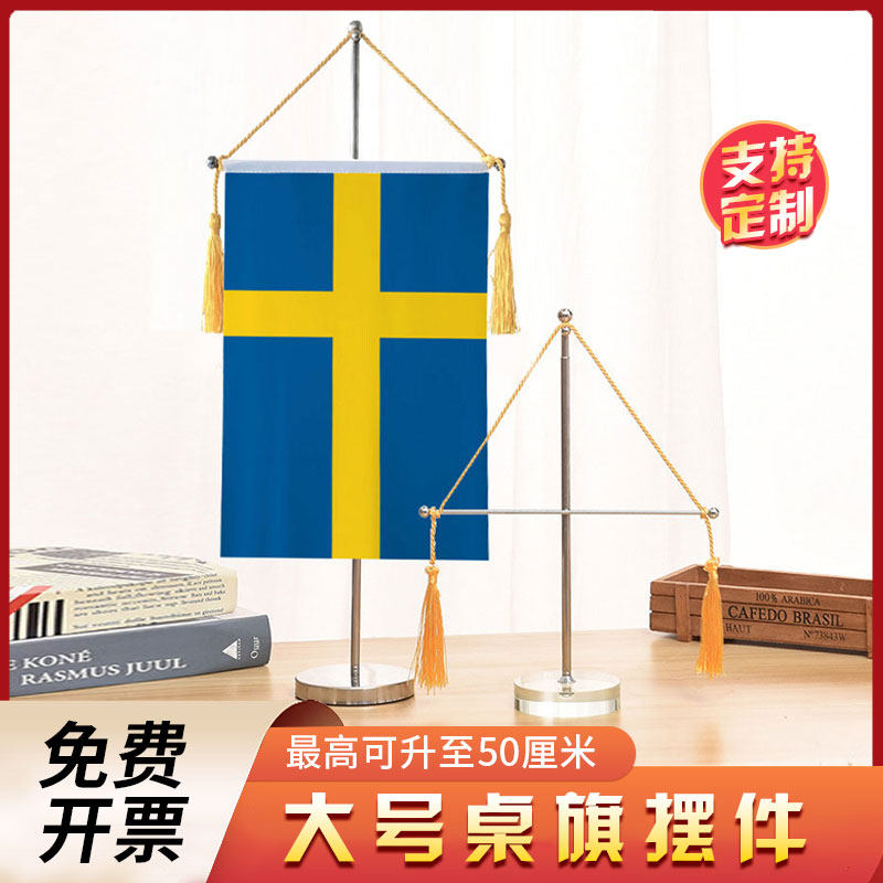 📚 瑞典国旗大号伸缩单杆十字桌旗办公室桌面摆件流苏旗帜