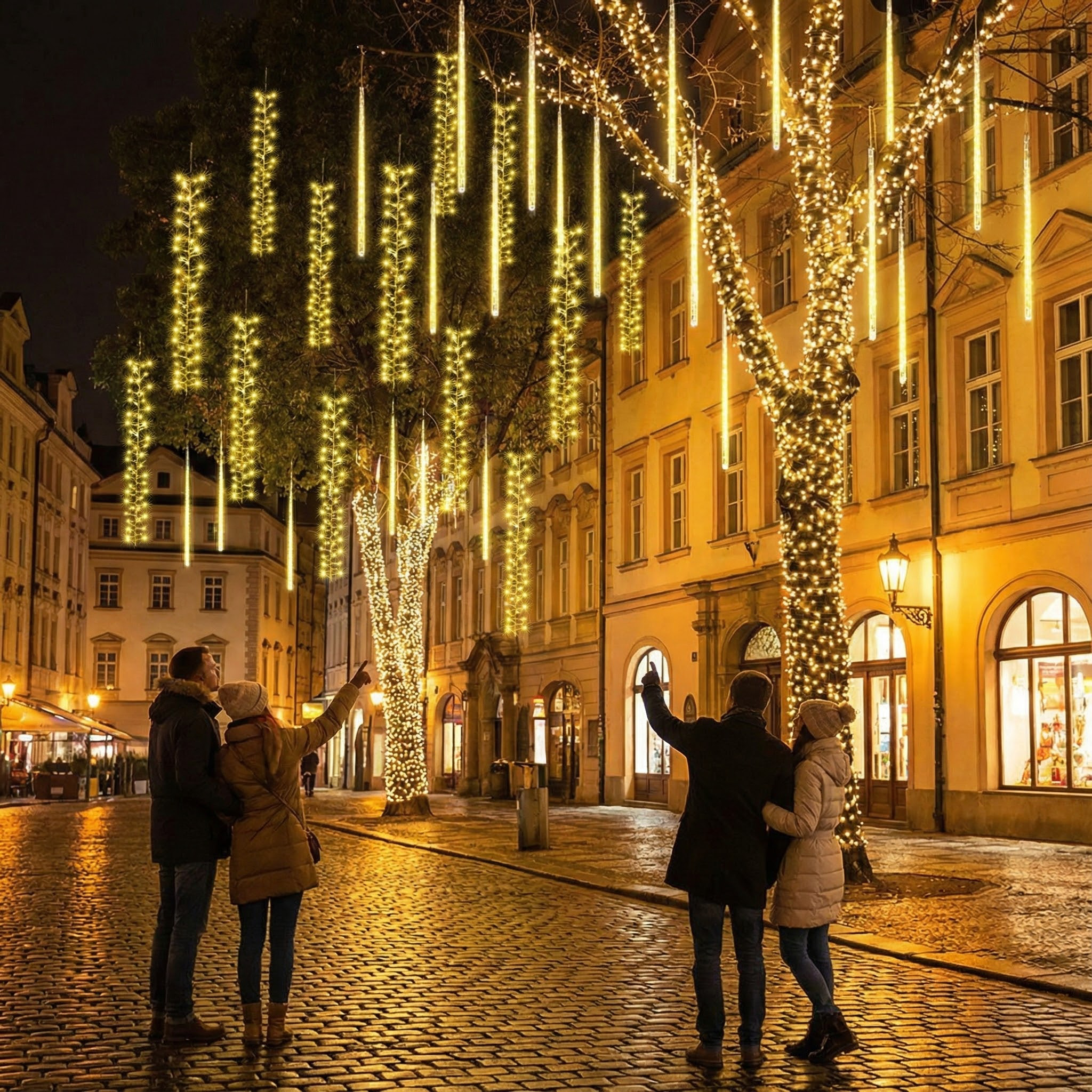 📚 新年春节装饰灯LED流星雨鞭炮灯串户外公园防水大树挂灯亮化彩灯