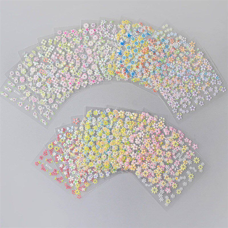 📚 24pcs Flower With Diamond Nail ers Set 3D Nail Art ers Self-