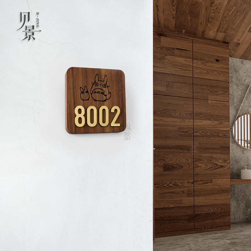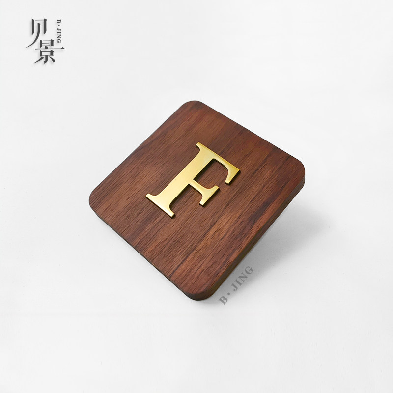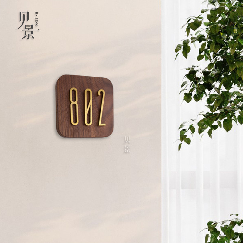 📚 北欧ins风简约胡桃木门牌家用黄铜数字门牌号码牌 房间复古民宿