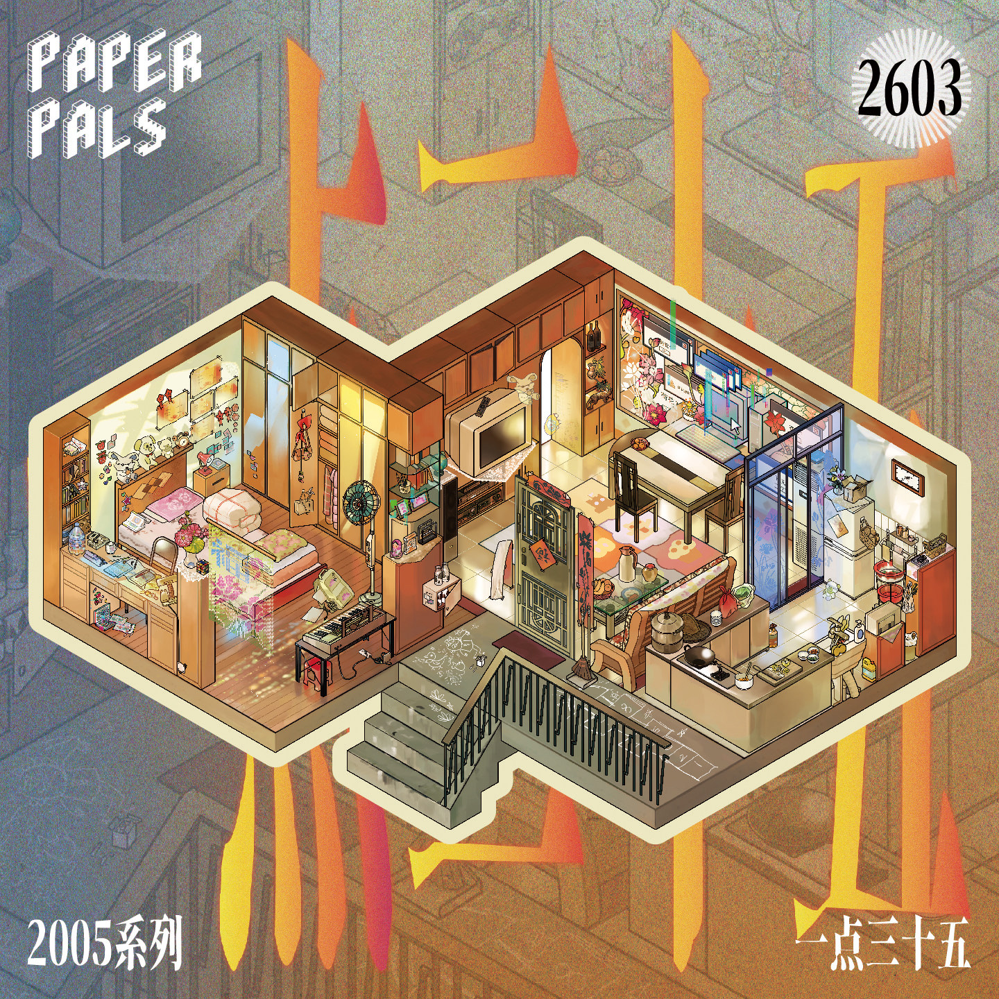 📚 一点三十五造景贴纸PAPERPALS纸泡2005系列大号特油亮膜复古梦核系列微缩场景玩具3D立体小屋贴画新年礼物