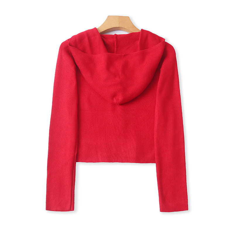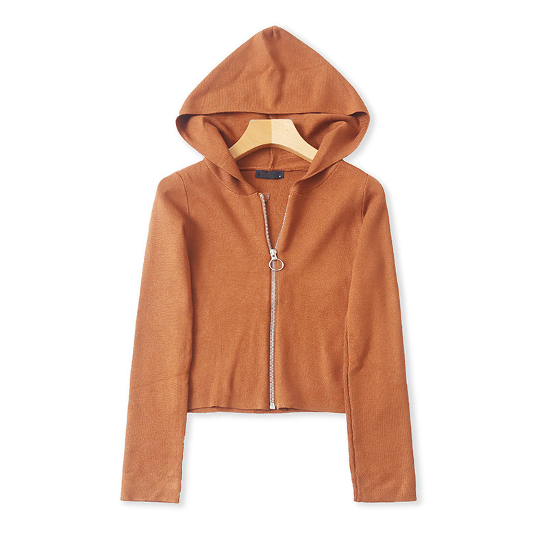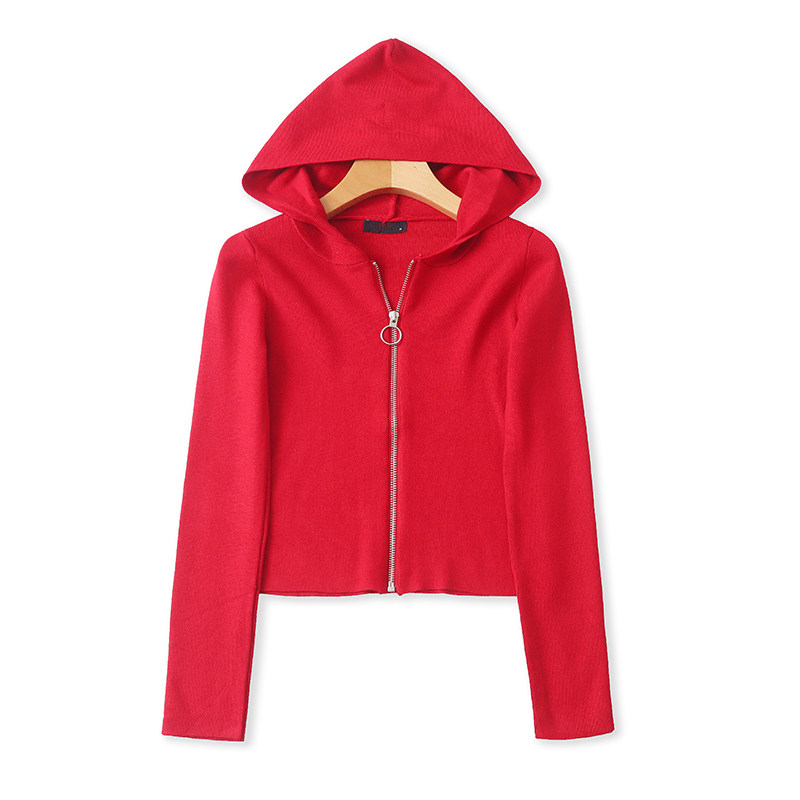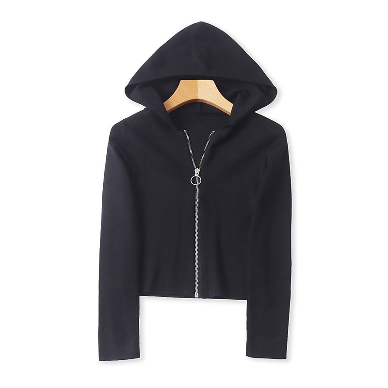 📚 双头拉链连帽针织衫 短款弹力长袖开衫 女修身帽衫上衣外套 11483