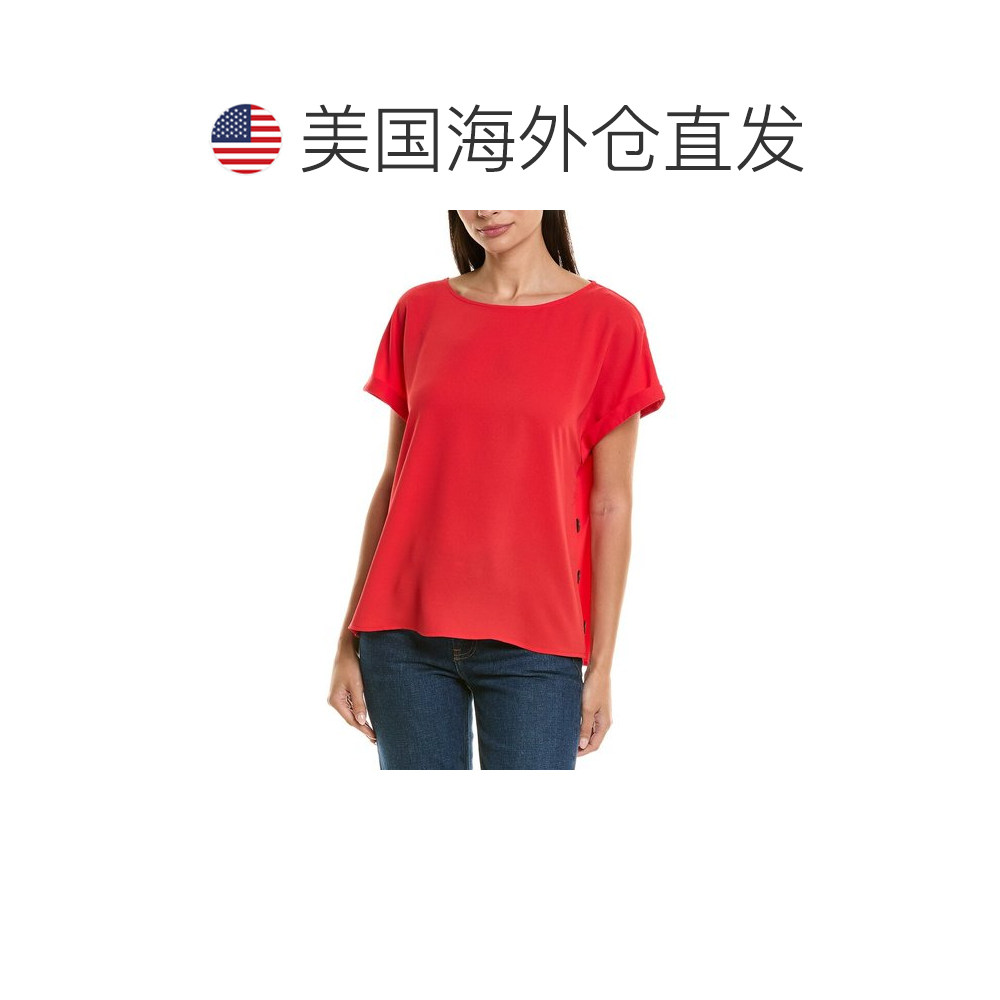 📚 自营 Jones New York Blouse - red 美国奥莱直发短袖上衣女装