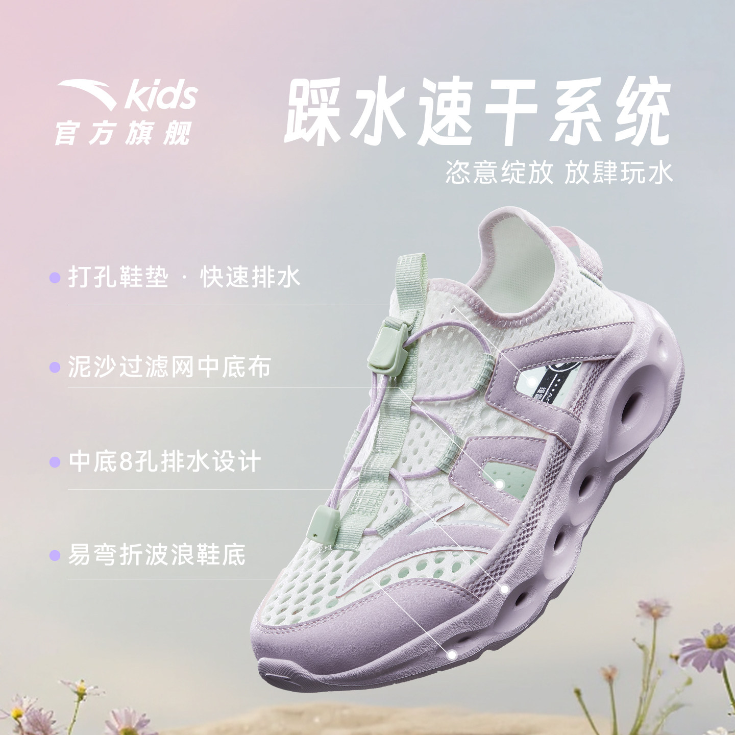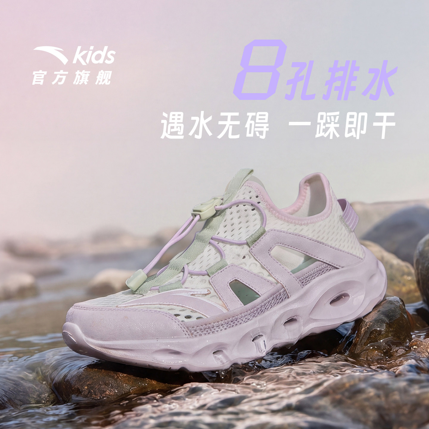 📚 踩水王|安踏儿童女童溯溪鞋沙滩鞋2026夏季新款户外网面运动凉鞋