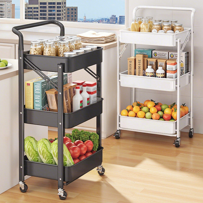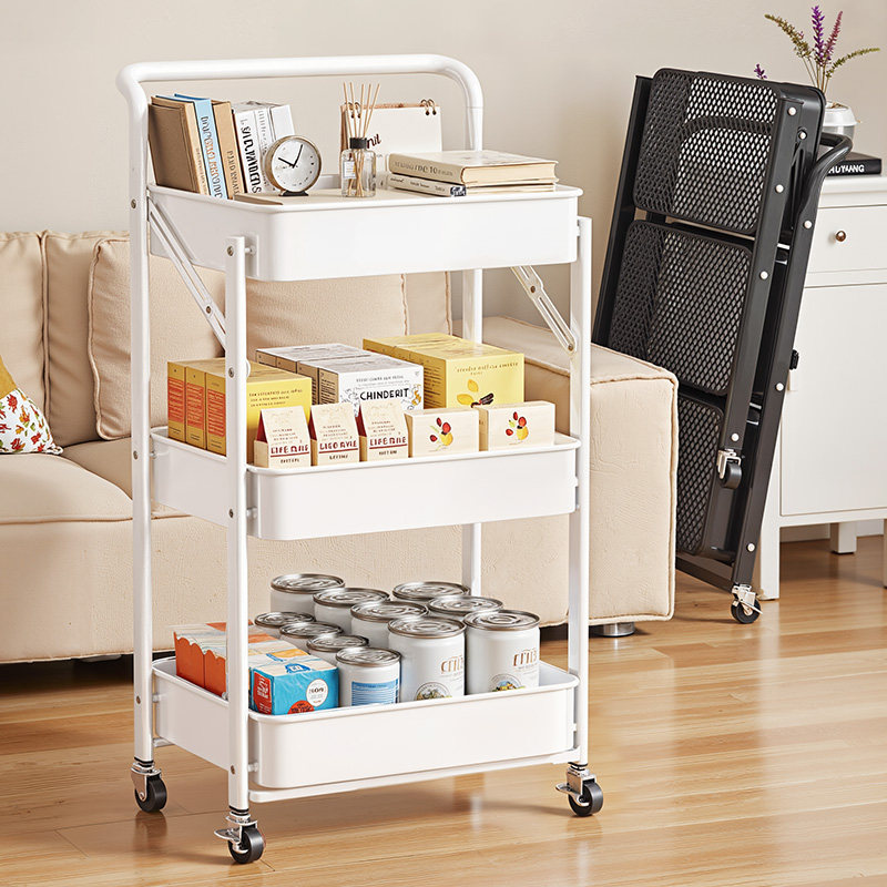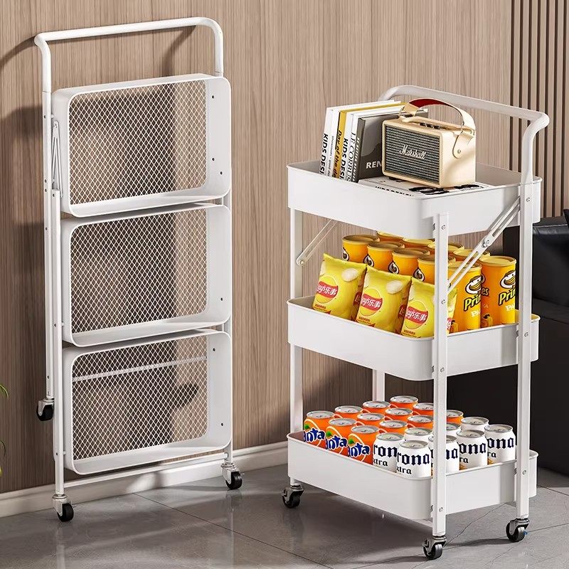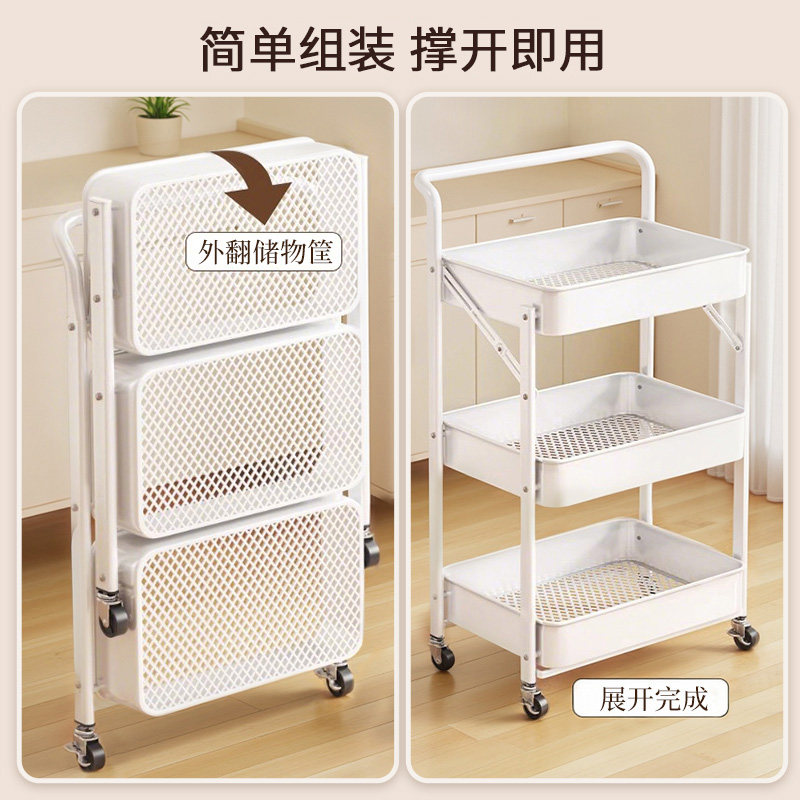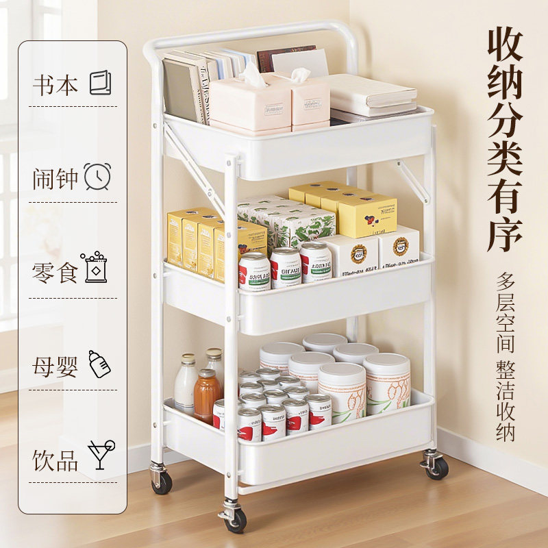 📚 折叠收纳小推车客厅零食置物架落地多层收纳架可移动厨房储物架子